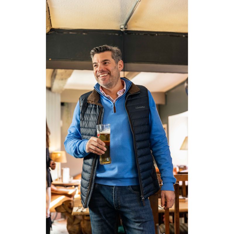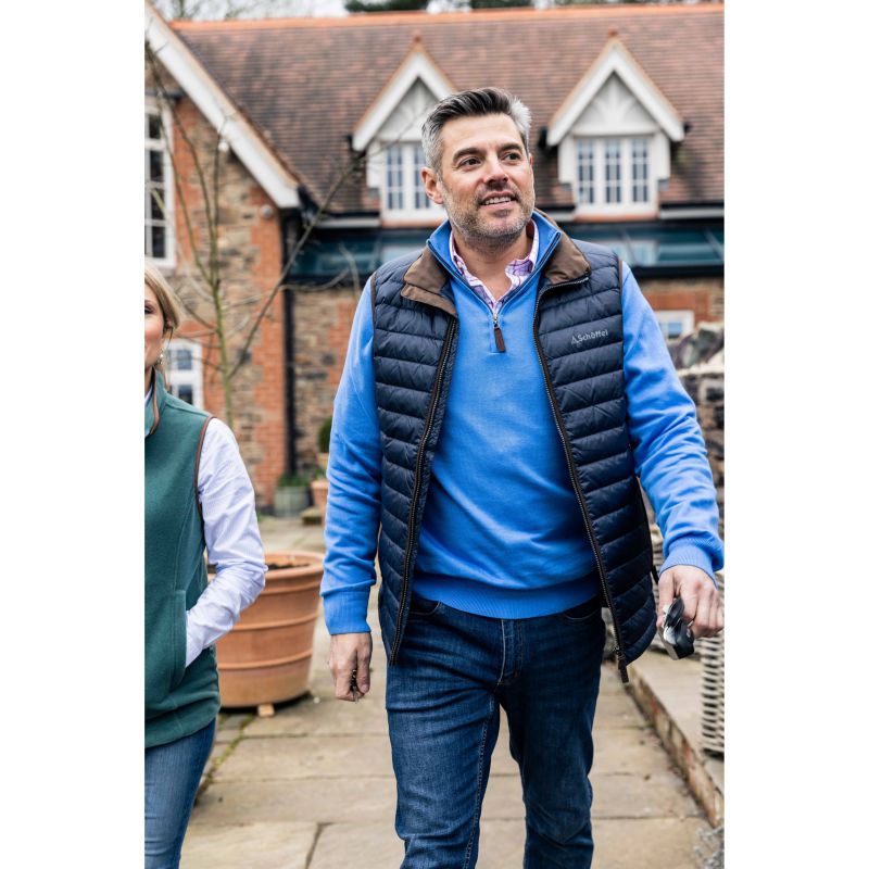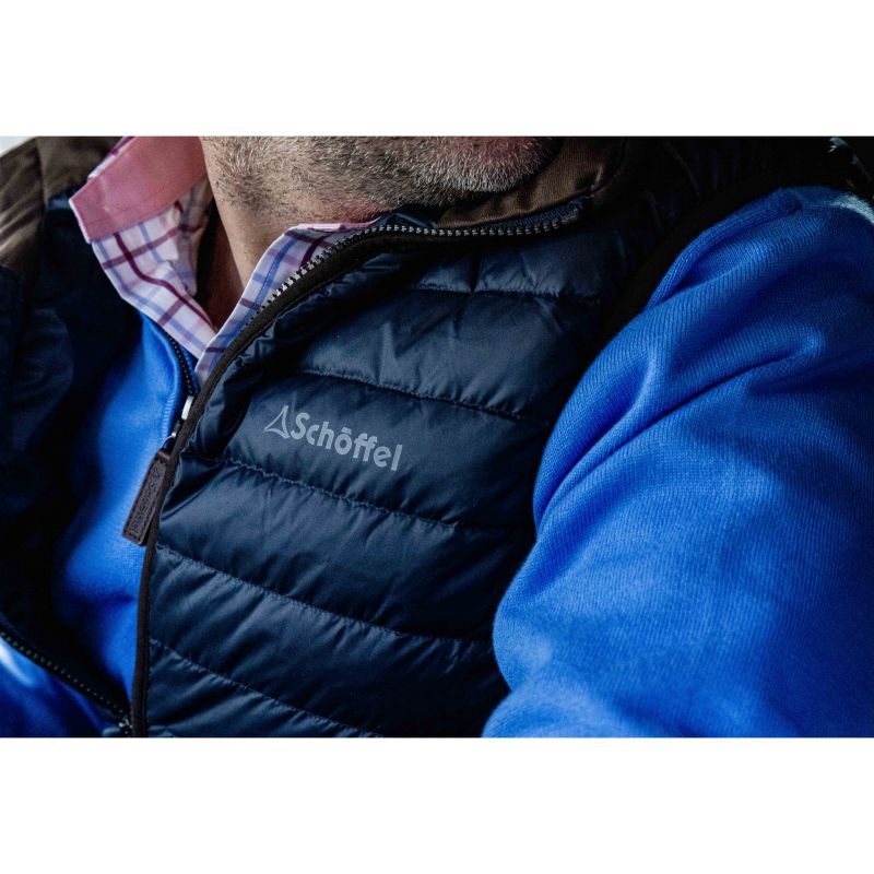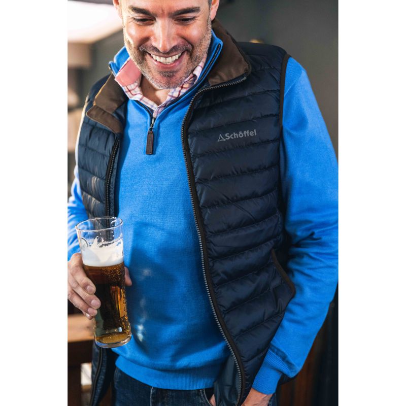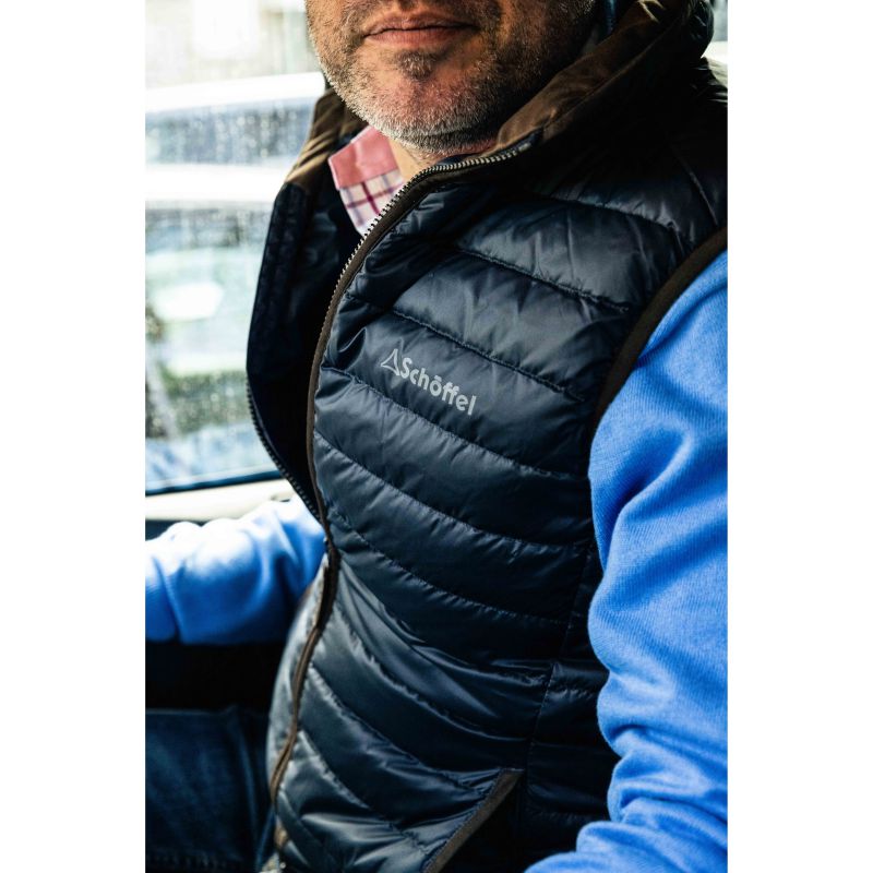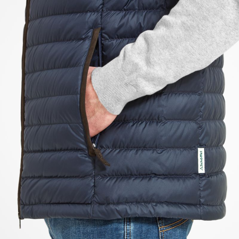 The Bowden Down Men's Gilet from Schoffel is a highly practical and rather smart water-repellent body warmer that provides superb lightweight warmth, ideal for layering up on cold days when you're on the go. The hardwearing outer is crafted from recycled polyester with a PFC-free water-repellent finish, combined with an ethically sourced down filling for exceptional heat retention. Cut in a comfortable regular fit with a cosy high collar, contrasting trim, two-way YKK zip and two zipped pockets.