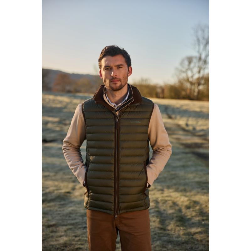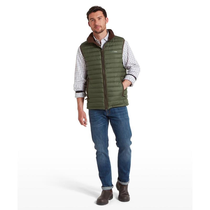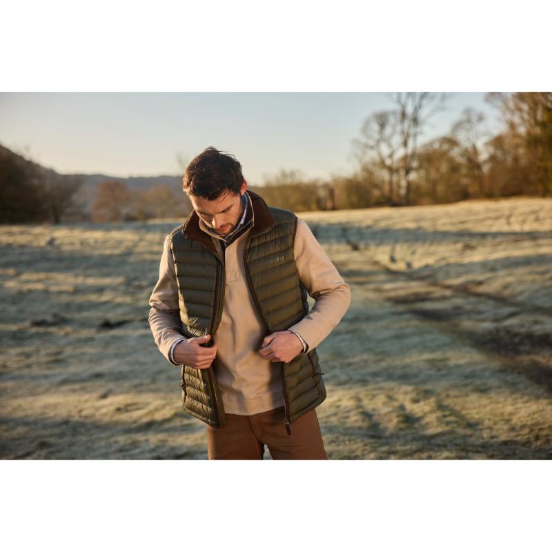 The Bowden Down Men's Gilet from Schoffel is a highly practical and rather smart water-repellent body warmer that provides superb lightweight warmth, ideal for layering up on cold days when you're on the go. The hardwearing outer is crafted from recycled polyester with a PFC-free water-repellent finish, combined with an ethically sourced down filling for exceptional heat retention. Cut in a comfortable regular fit with a cosy high collar, contrasting trim, two-way YKK zip and two zipped pockets.