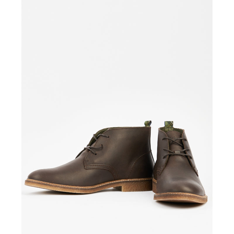 Expertly crafted with 100% Bovine leather, the Barbour Sonoran Mens Desert Boot brings both style and durability to your footwear collection. The three eyelet design and faux crepe Barbour branded outsole offer a comfortable fit and long-lasting wear. Elevate your desert boot game with this timeless piece.