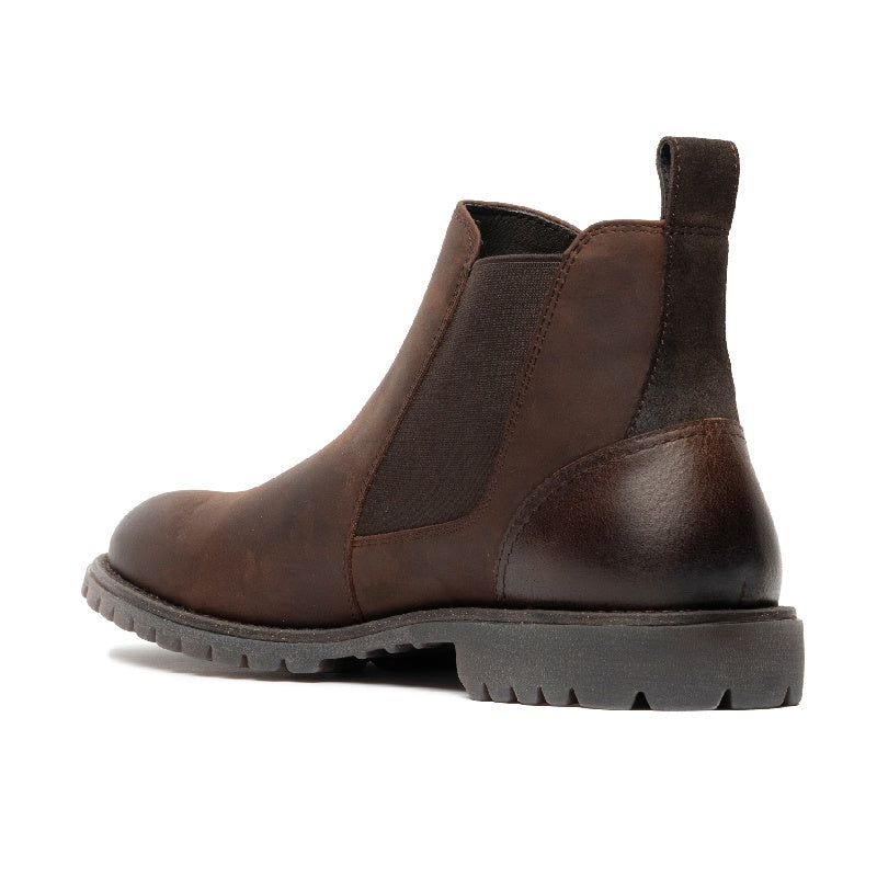 The Clearmont Chelsea boot combines soft USA leather and oiled suede in a multi-media upper, complemented by leather and fabric linings for breathability. It features a removable leather-covered moulded polyurethane footbed for customised comfort. The cleated translucent rubber outsole offers exceptional flexibility and all-day wearability. Designed to pair effortlessly with denim or chinos, this boot balances style and expert craftsmanship for versatile, comfortable wear.