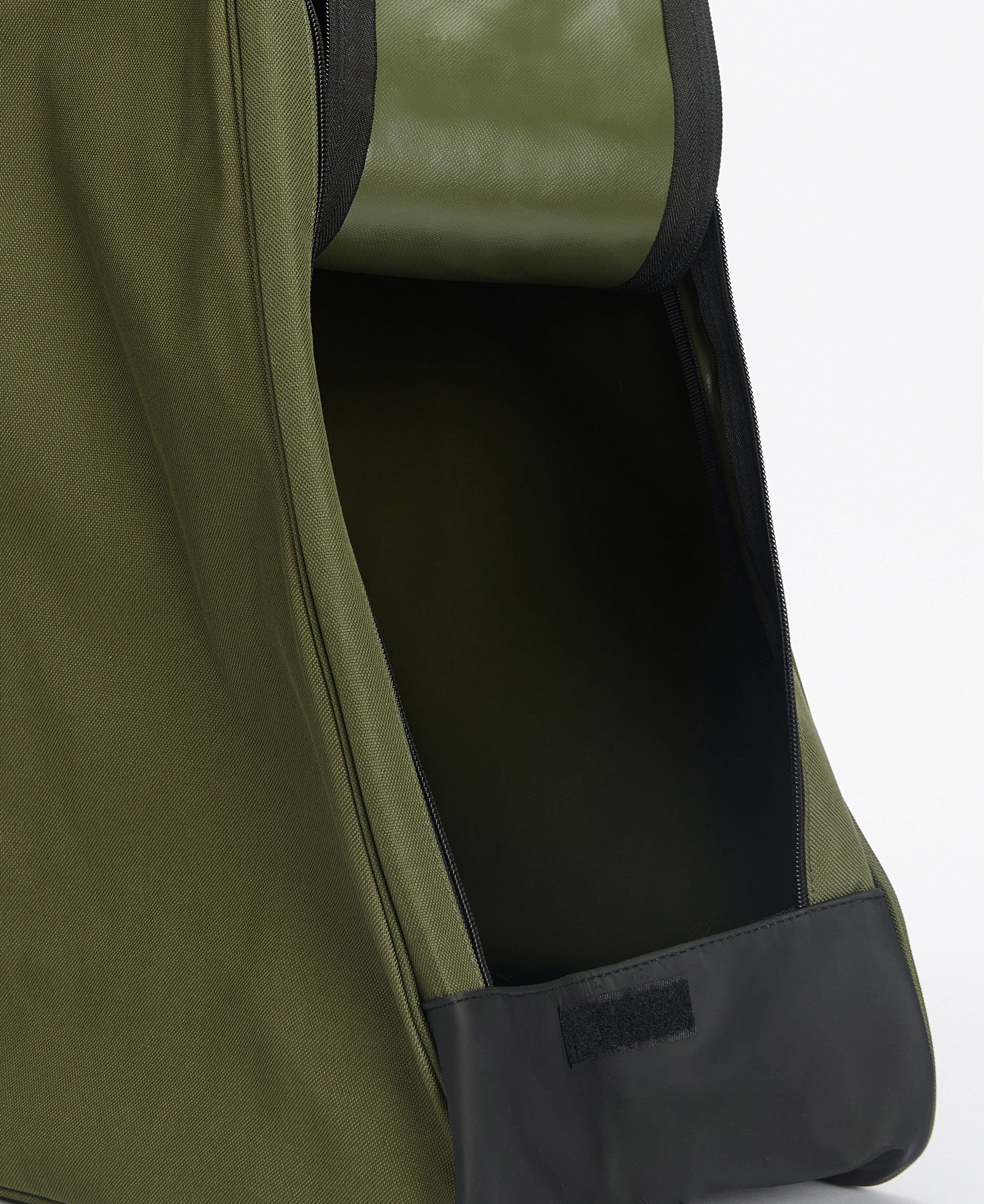 The Barbour Wellington Bag is a tough Nylon exterior, PVC bottom with feet, rear mesh pocket, parallel zip closure, internal zip pocket, carry handle and shoulder strap. Keep the mud on your boots not in the car!