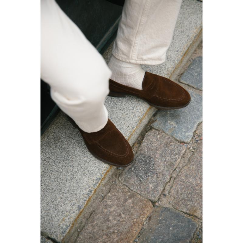 The Loake Imperial Mens Suede Loafer offers a sophisticated and versatile style with timeless penny loafer design. Crafted on the traditional College last with a wider G fitting, it delivers added comfort without sacrificing an elegant silhouette. Its Goodyear welted rubber soles provide durability, excellent traction, and the ability to be resoled, ensuring long-lasting wear. Handmade in England’s Northamptonshire, these shoes embody expert British craftsmanship. For optimal shape retention and ease of wear, use a shoehorn to prevent heel creasing and maintain the loafer’s refined fit.