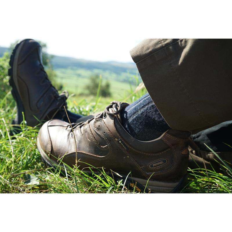 The Caracas Mens GORE-TEX Waterproof Shoe from Meindl is so much more than your average walking shoe. Designed to provide lightweight comfort and support over a variety of terrains, the Caracas is crafted from quality nubuck leather making them durable and hardwearing, yet supple enough to offer unrestricted movement whilst they mold to your feet. The GORE-TEX lining ensures they are fully waterproof and breathable and the Air-Active footbed wicks away moisture keeping your feet cool and dry even during high levels of activity. The unique Urban Walker sole by Vibram with EVA-midsole has been designed to provide grip, support and cushioning wherever you choose to spend your days, from country walks to running errands around town.