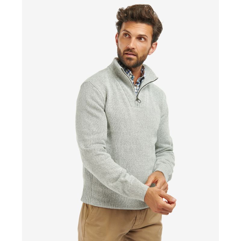Barbour Cotton Twist Nelson Half Zip Mens Jumper - Oyster