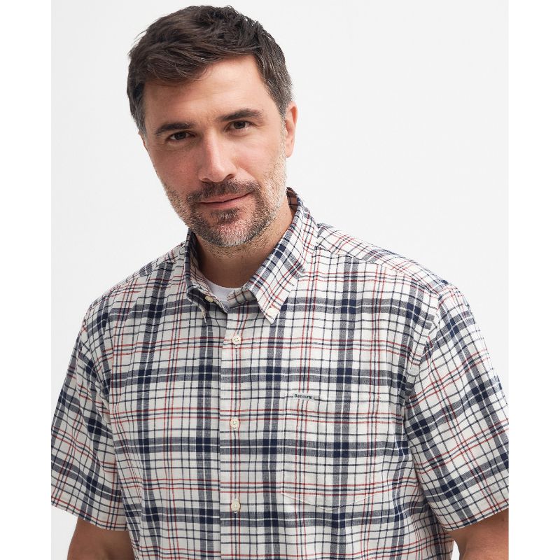 The Barbour Drafthill Regular Fit Mens Shirt is made with short sleeves and a regular fit design for superior comfort. Crafted from 100% cotton in a classic slub weave, this shirt features a soft finish for a luxurious touch. The Barbour shield is featured on a branded label at the top left of the pocket for added authenticity.