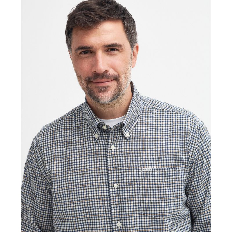 The Barbour Durand Regular Fit Mens Shirt is a timeless piece of craftsmanship. Its traditional country check design is weaved from slub cotton fabric and finished with a soft finish, making it an ideal addition to any wardrobe. The Barbour and shield branded label is subtly positioned on the top left of the chest pocket– breaking up the pattern and adding a touch of sophistication.