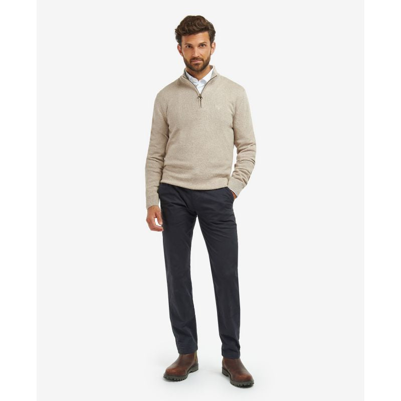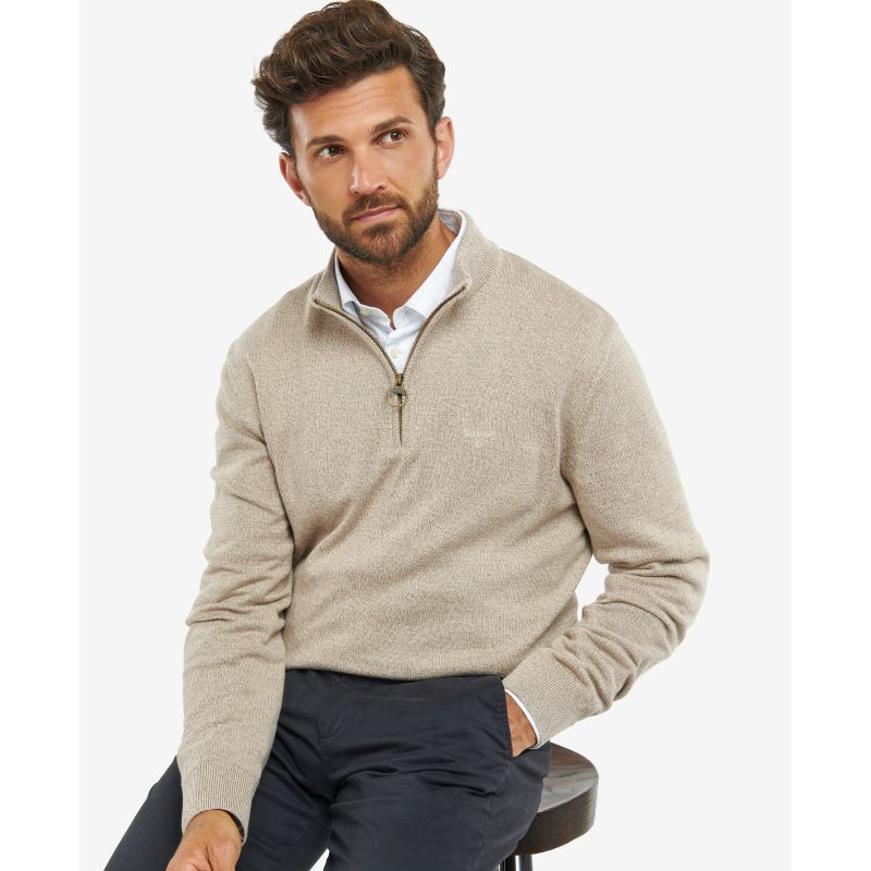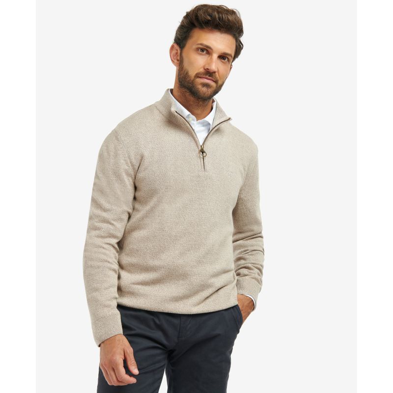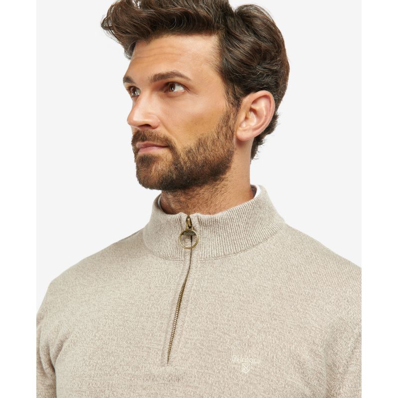 Barbour Firle Cotton Cashmere Mens 1/4 Zip Jumper - Stone Marl