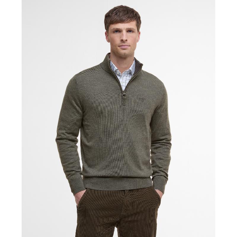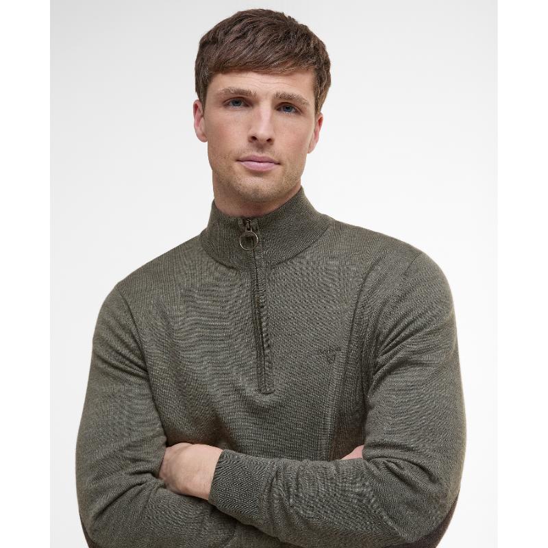 Barbour Loyton Merino Mens 1/4 Zip Jumper - Olive Marl