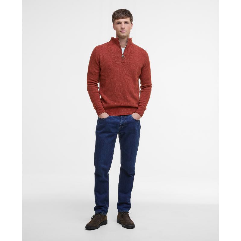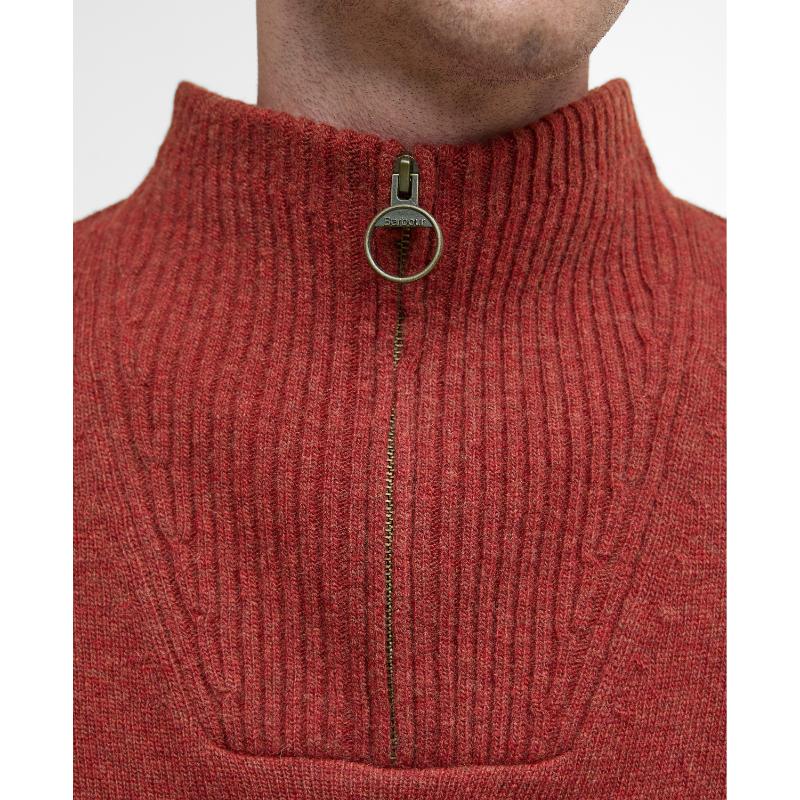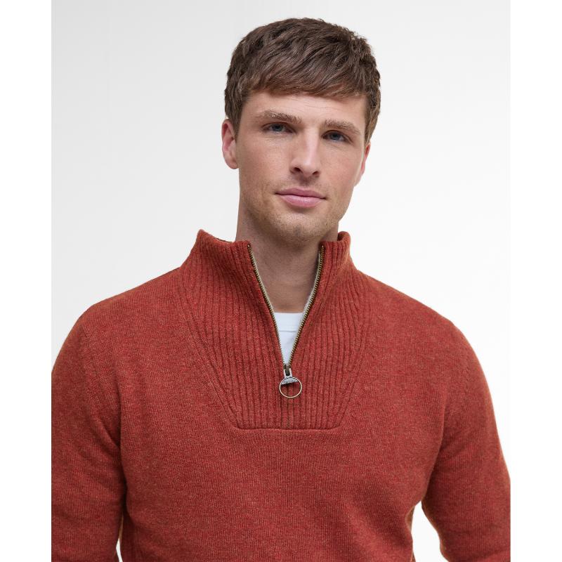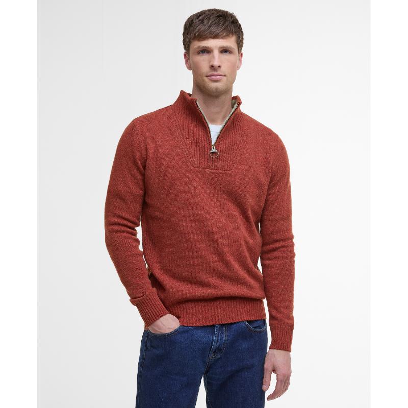 Barbour Nelson Essential Lambswool 1/4 Zip Mens Jumper - Brick Red