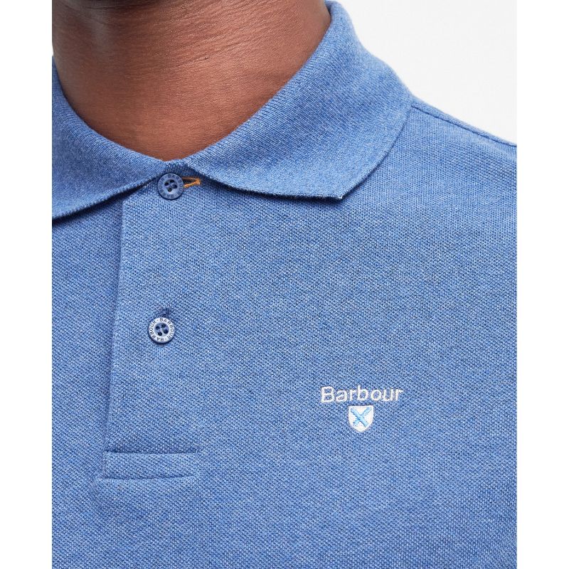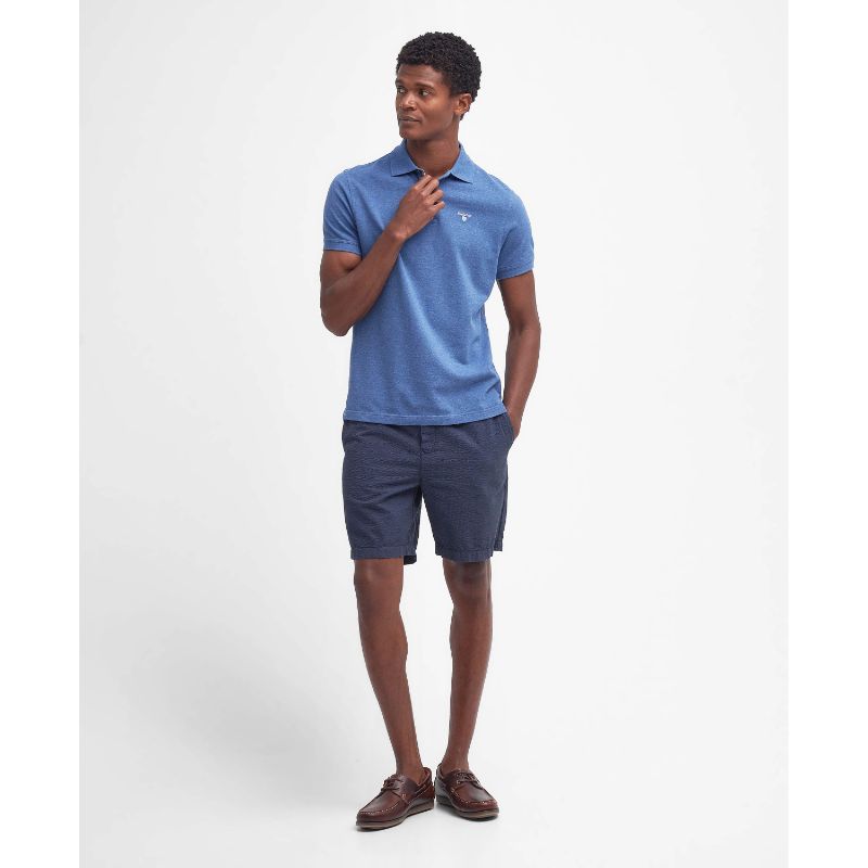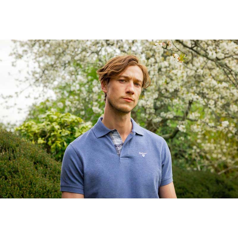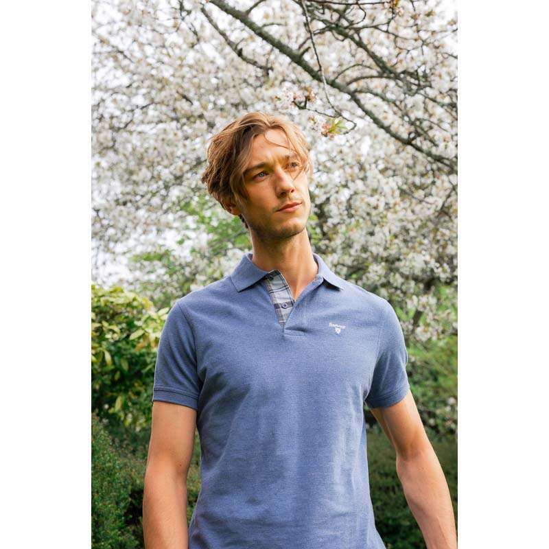 Barbour Tartan Pique Mens Polo Shirt - Dark Chambray Marl
