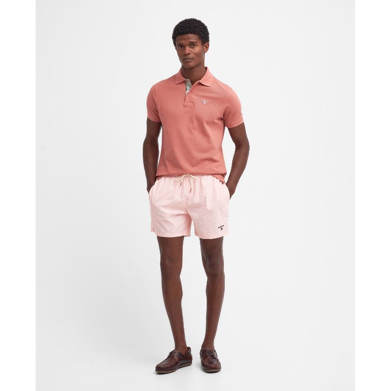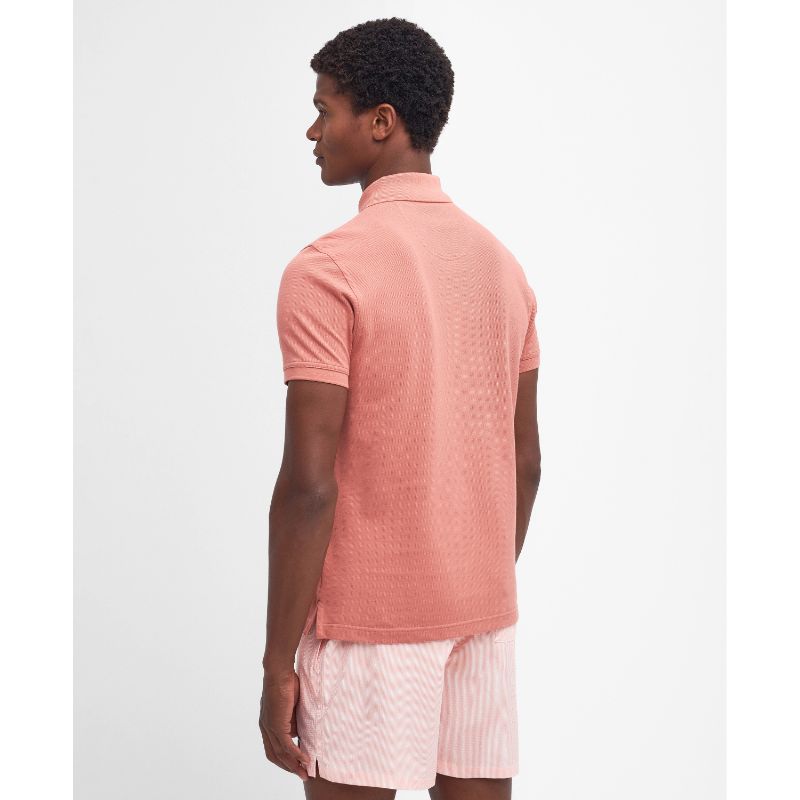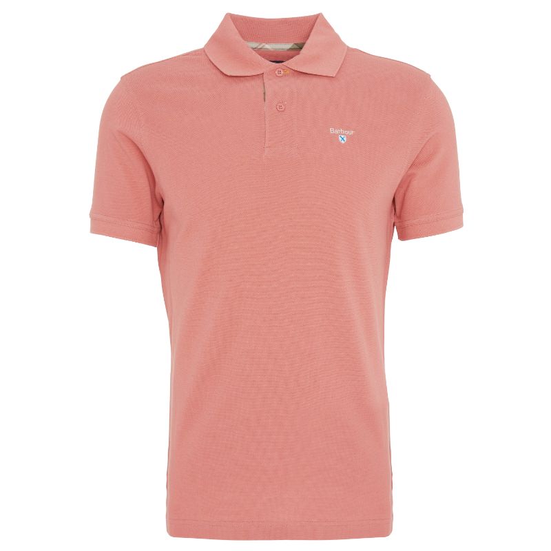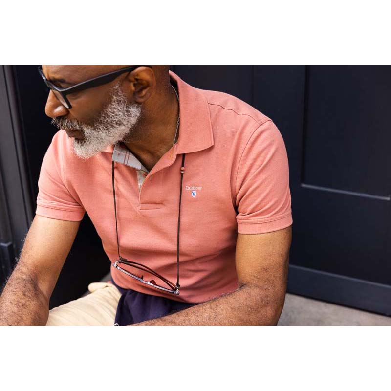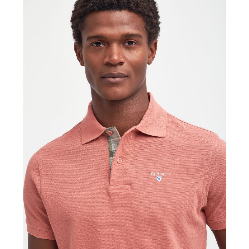 Barbour Tartan Pique Mens Polo Shirt - Pink Clay