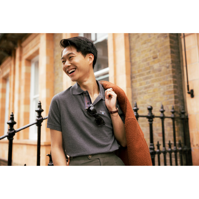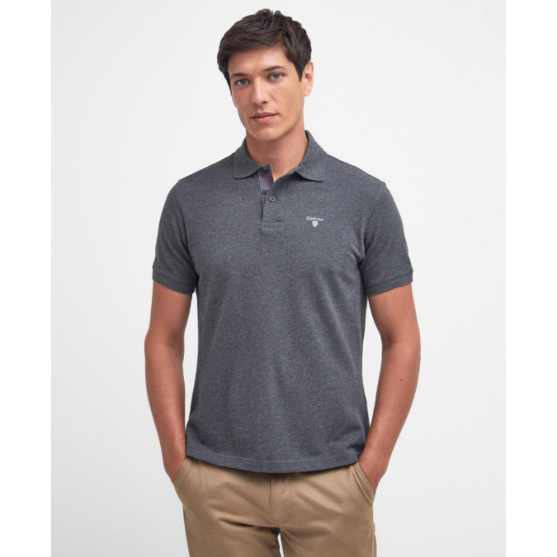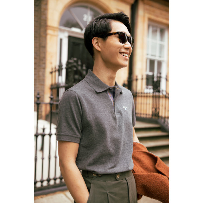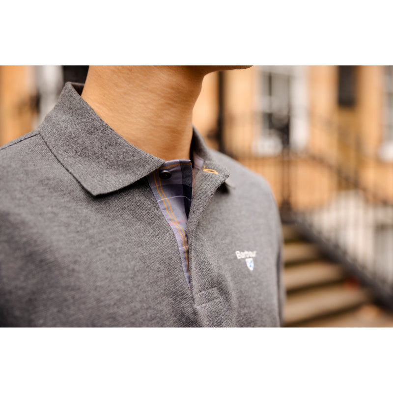 Barbour Tartan Pique Mens Polo Shirt - Slate Marl