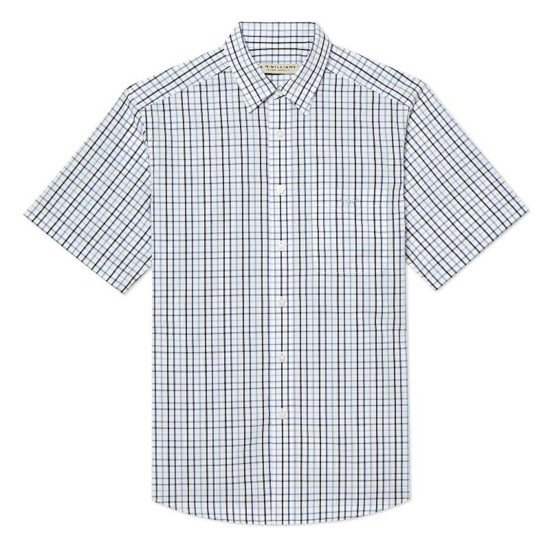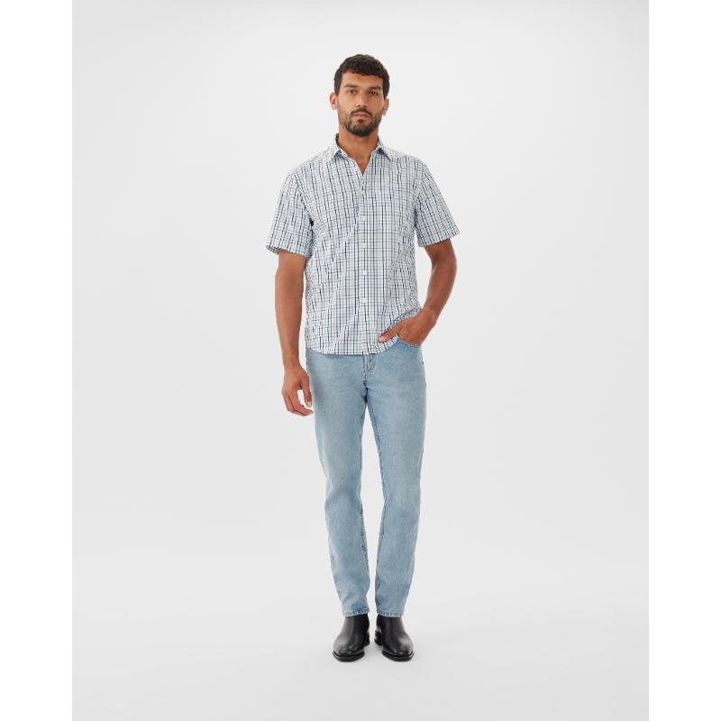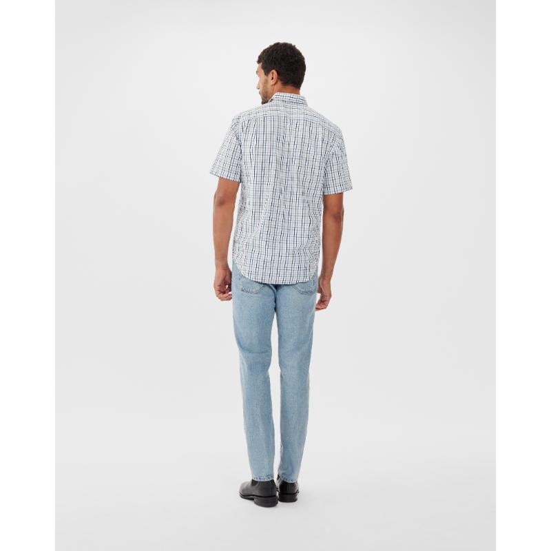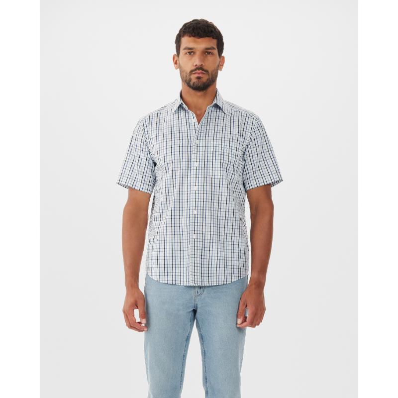 R.M.Williams Hervey Mens Short Sleeve Shirt - White/Navy/Blue