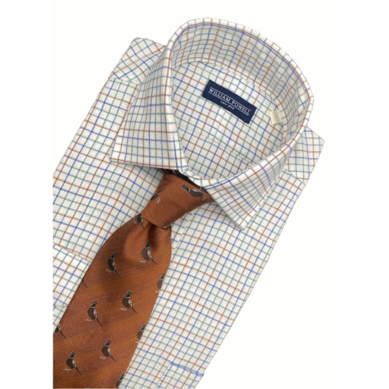 When grouse shooting you really should be camouflaged, no bright colours or white or cream, so the William Powell Cotton Grouse Mens Shooting Shirt is perfect. You need to blend into the countryside; Grouse are wild and have no intention of getting close to you if they see you! The colouring on these fine brushed cotton shirts is perfect. Cut with a shooting fit and long tails so ample room for movement with a classically shaped collar, removable collar stiffeners and discreet chest pocket.