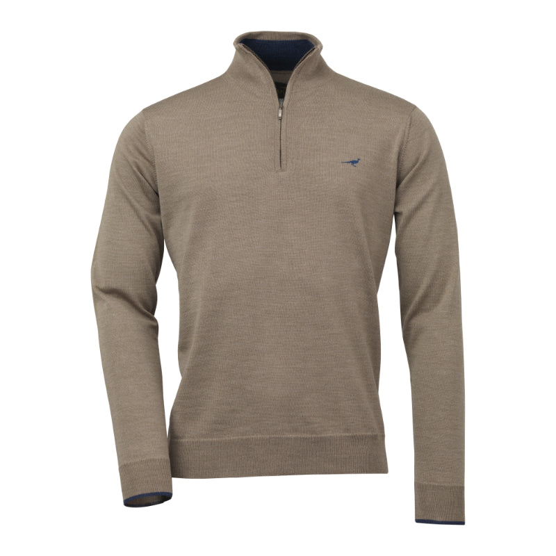 Laksen Norfolk 1/4 Zip Merino Mens Jumper - Dark Sand
