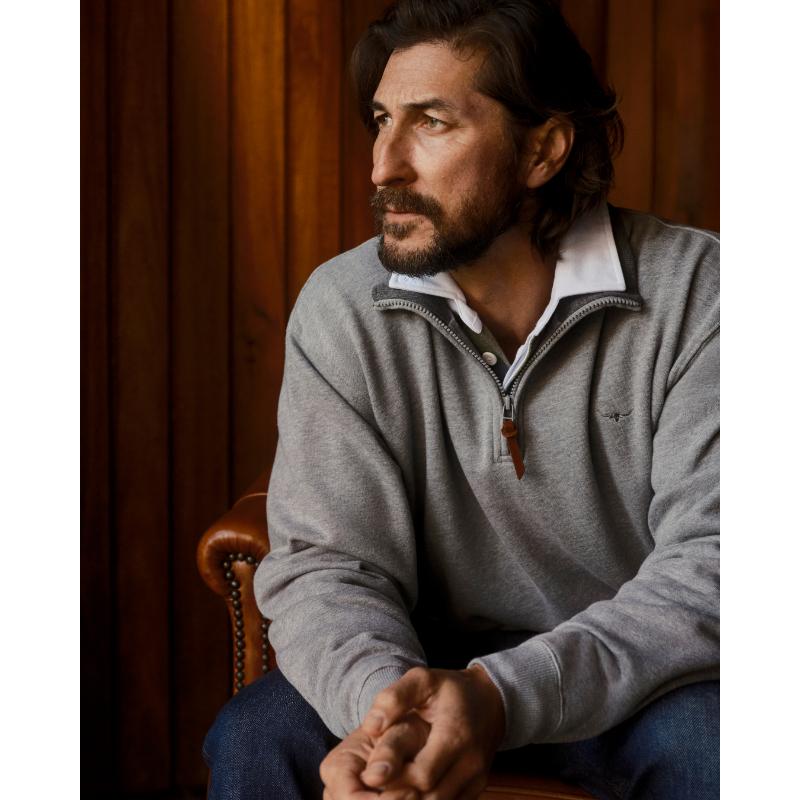 The R.M. Williams Mulyungarie 1/4 Zip Mens Sweater is a super comfortable and exceedingly versatile jumper. Crafted from a cotton blend finished with a soft brushed finish. Featuring the ever-popular zip neck with a neat leather zip puller, including ribbed cuffs and hem, and finished with the iconic R.M.Williams Longhorn embroidery on the chest. Crosses easily from smart to casual at a great price.