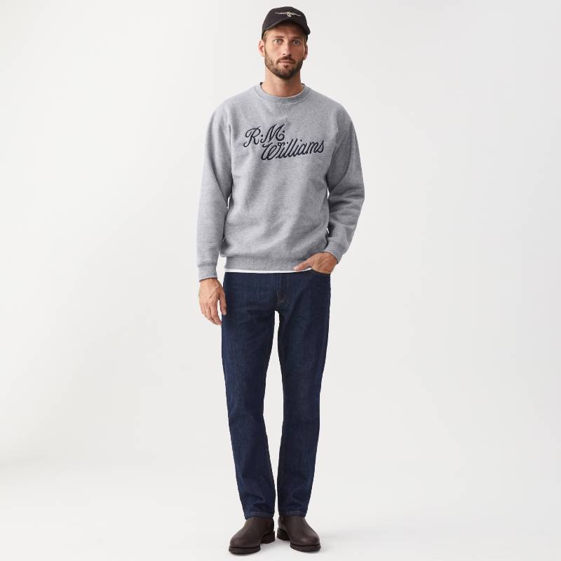 R.M.Williams Script Crew Neck Mens Sweater - Grey/Blue