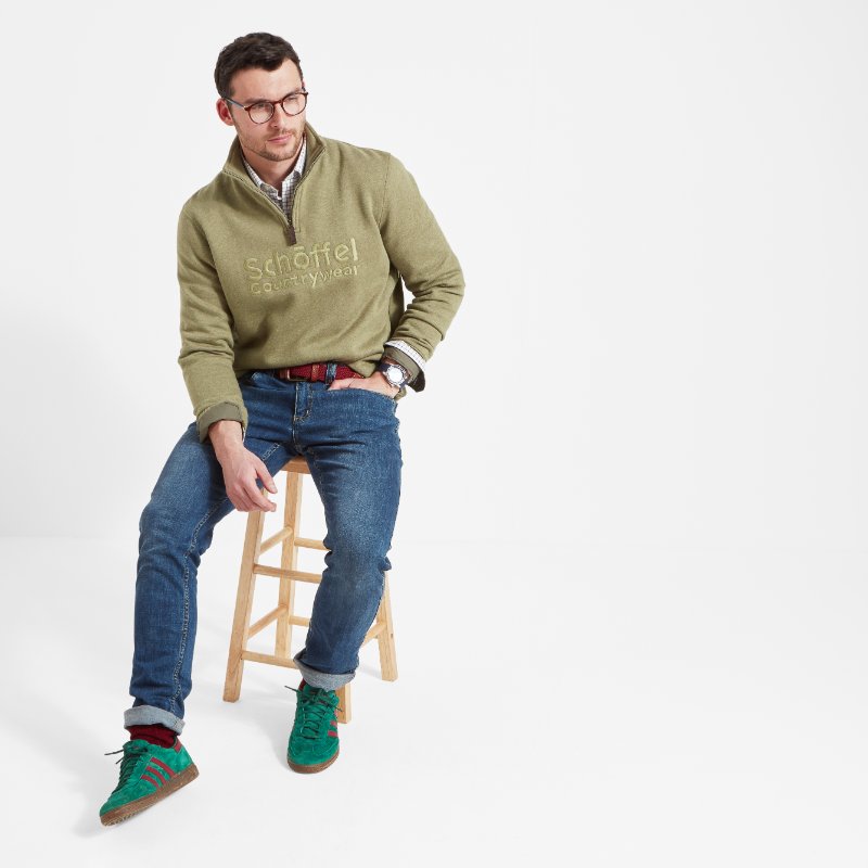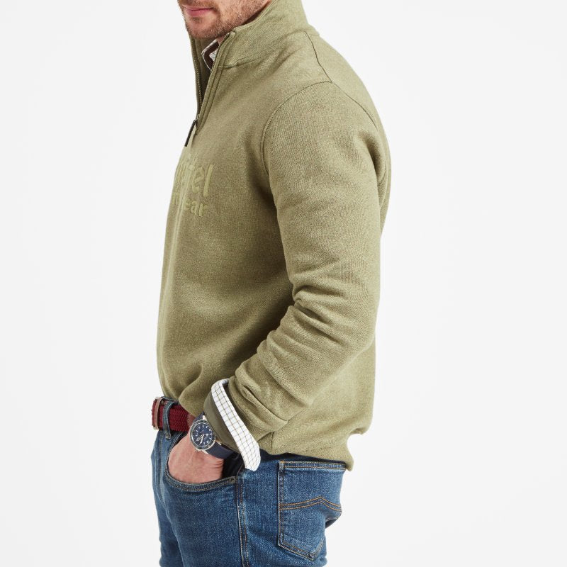 Schoffel Bude Mens 1/4 Zip Sweatshirt - Light Khaki Marl