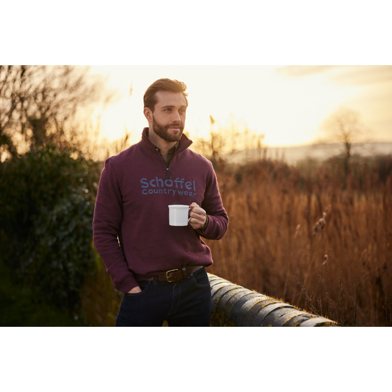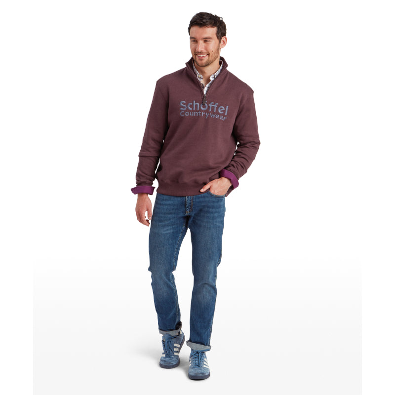 Schoffel Bude Mens 1/4 Zip Sweatshirt - Wine Marl