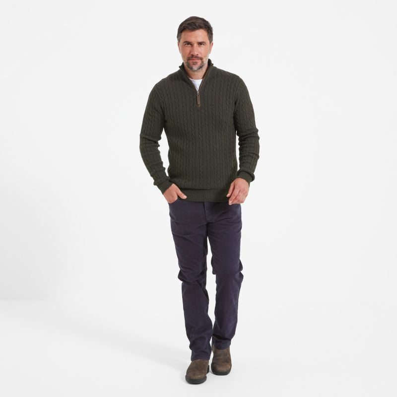 Schoffel Cotton Cashmere Cable 1/4 Zip Jumper - Loden Green