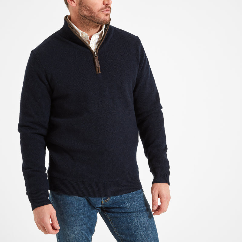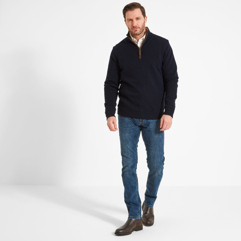 Schoffel Lambswool Aerobloc 1/4 Zip Neck Mens Jumper - Navy