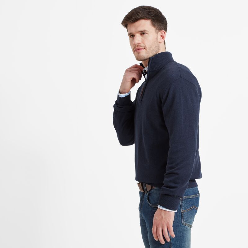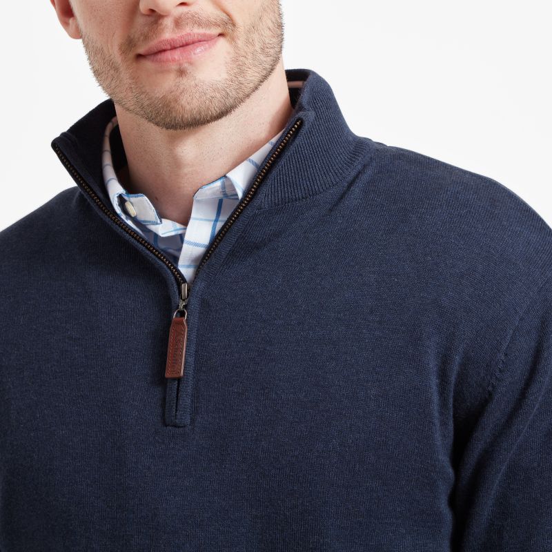 Schoffel Porthmeor Pima Cotton 1/4 Zip Mens Jumper - Navy