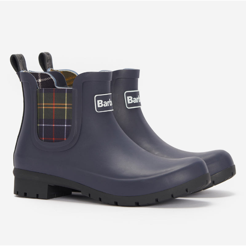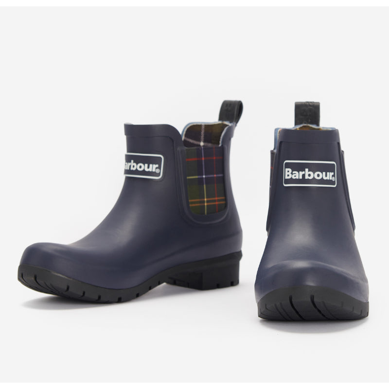 The Barbour Kingham Ladies Ankle Wellington Boot is such a useful addition to your footwear collection, ideal for gardening, dog walks or running errands when the weather is not so good. The Chelsea boot inspired design is smart, functional and really rather stylish, crafted from a durable rubber blend. With a printed Barbour tartan lining and elasticated gusset, providing a supremely comfortable fit and complete with handy boot pull and Barbour branding to front and heel.