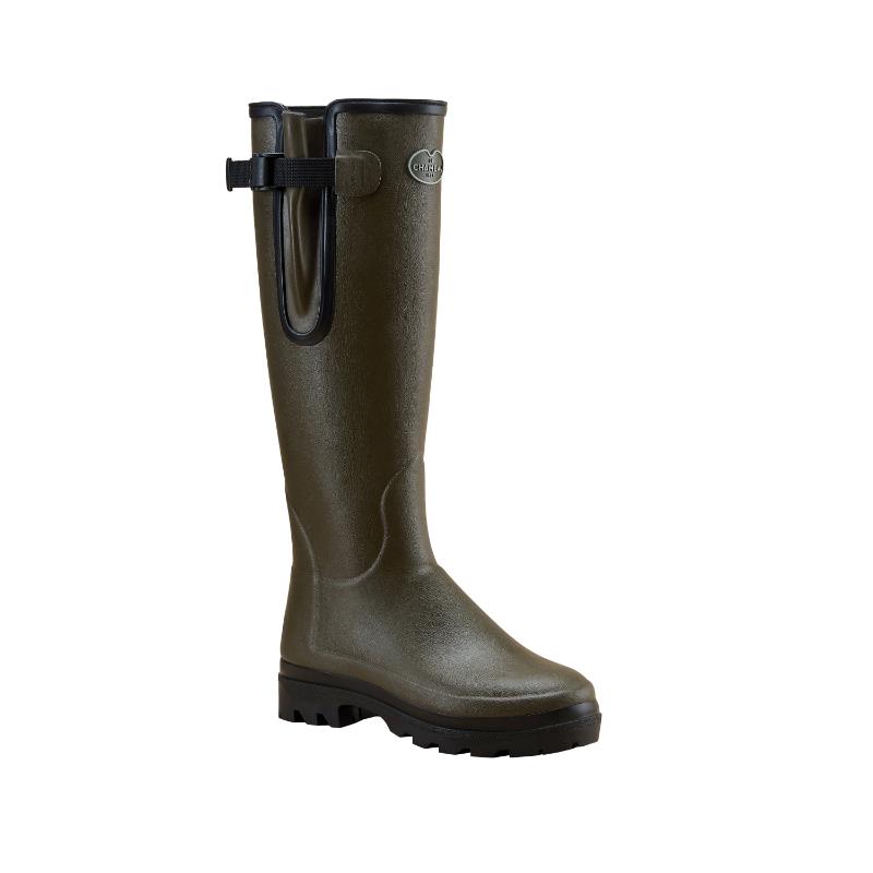 Best selling wellington; tried, tested and hugely popular! Made to an incredibly high standard, this natural rubber boot has an adjustable side gusset with strap and buckle to achieve a comfortable fit along with a shank reinforcement for better arch support. Fully lined with a black 3mm neoprene lining providing fantastic thermal insulating properties and a dual density all terrain grip sole, this is the perfect boot for cold weather.