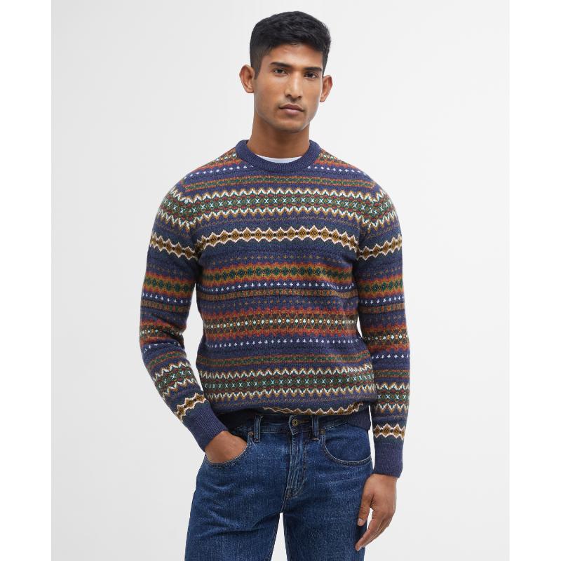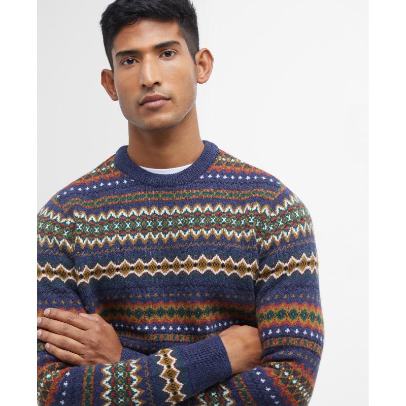 Barbour Case Fairisle Mens Lambswool Crew Neck Jumper - Navy Marl