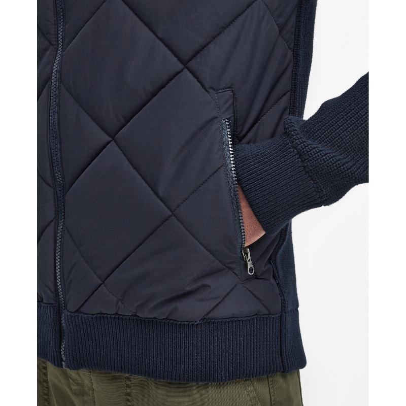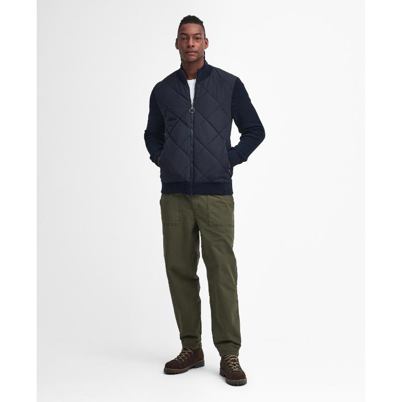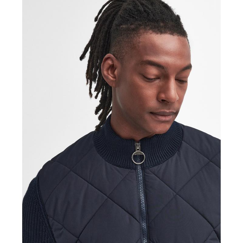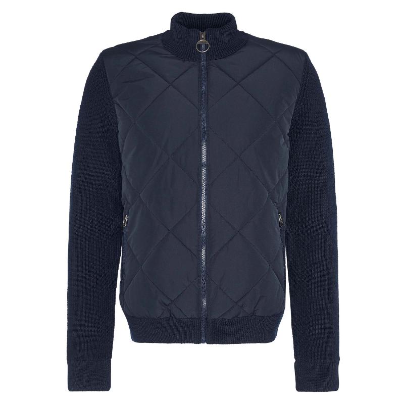 Expertly crafted by Barbour, the Newland Zip Through Mens Knitted Jumper is a heavy-weight hybrid that combines the warmth of cotton with the durability of nylon. The chunky rib stitch, down-like wadding, and 4'' box quilting provide superior protection from the cold, making this a must-have for any winter wardrobe.