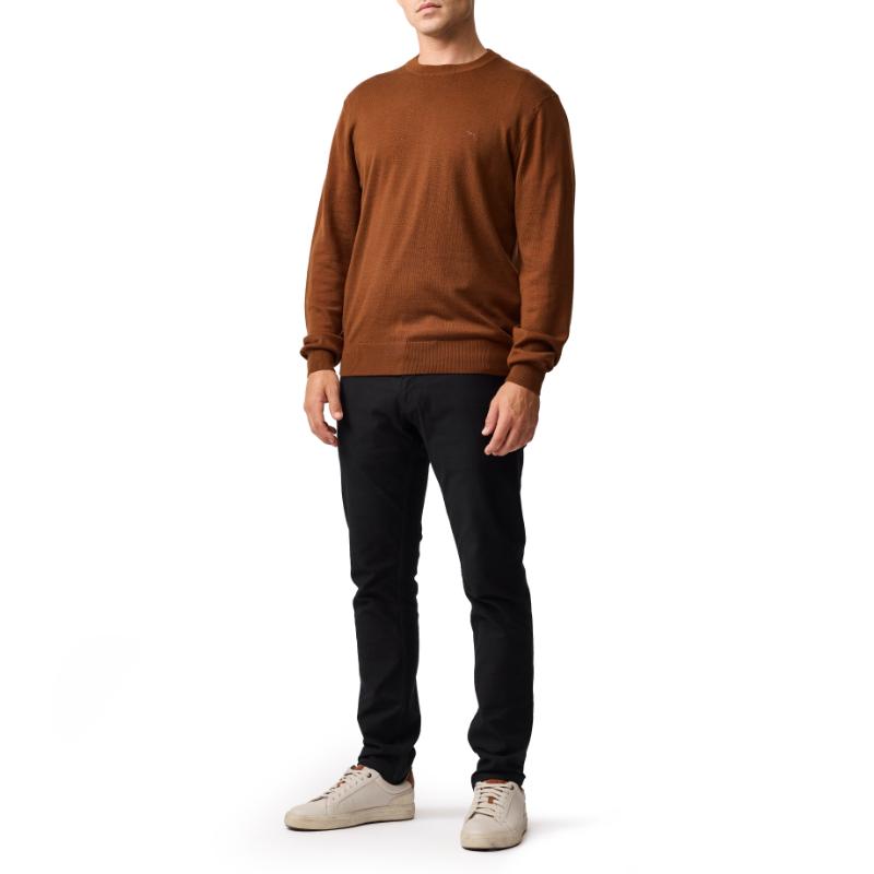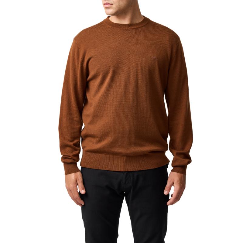 Rodd & Gunn York Bay Mens ZQRX Merino Crew Neck Jumper - Tobacco