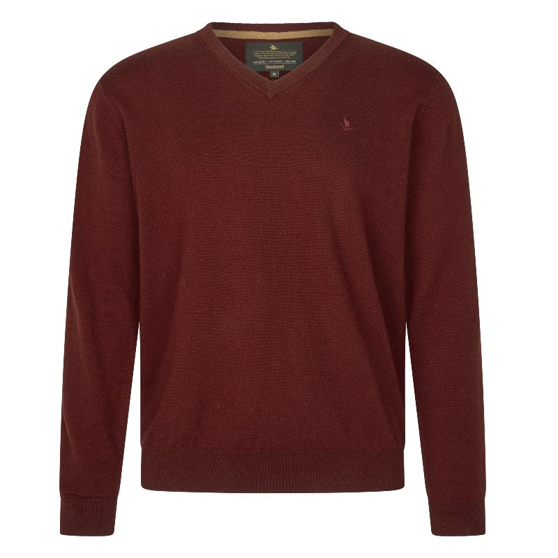 Seeland Pine Merino Mens V-Neck Jumper - Merlot