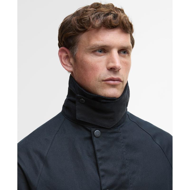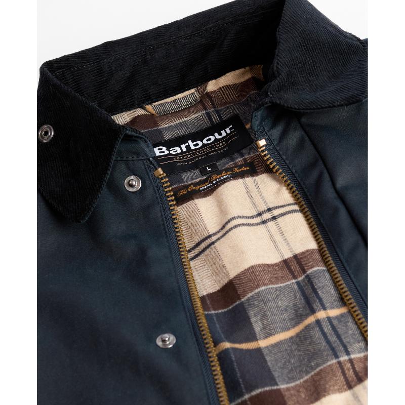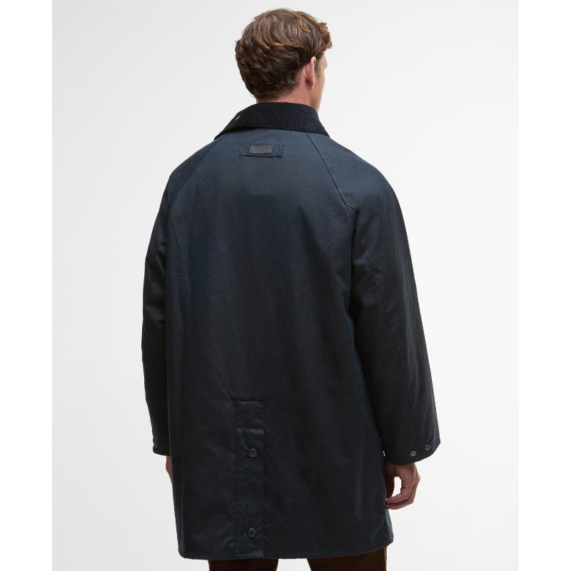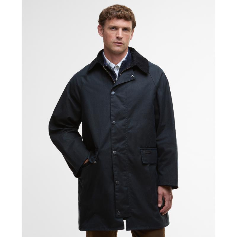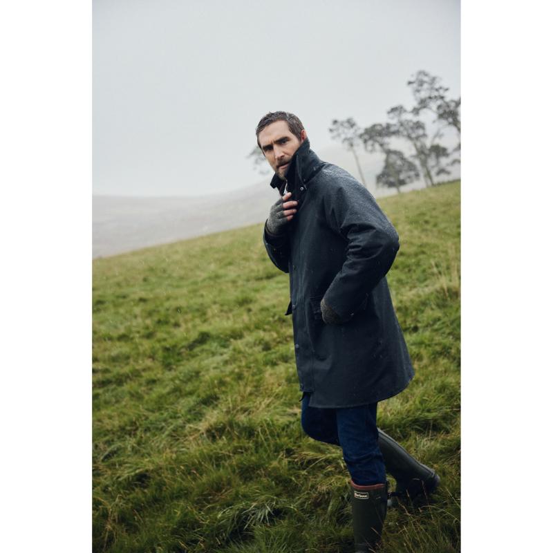 The Barbour Country Mens Wax Mac Jacket is crafted from Barbour’s signature 6oz waxed cotton, providing durable weather resistance ideal for cooler months. Its box quilted lining ensures warmth, while the storm guard fastening offers extra protection against wind and rain. This classic long-length mac features a cord collar, tartan lining, and practical lower pockets, combining timeless style with functional design. Subtle Barbour branding on the pocket adds a refined touch, making this jacket a reliable and stylish choice for outdoor wear.