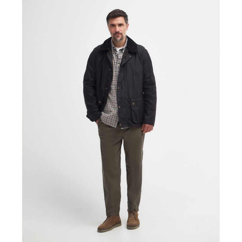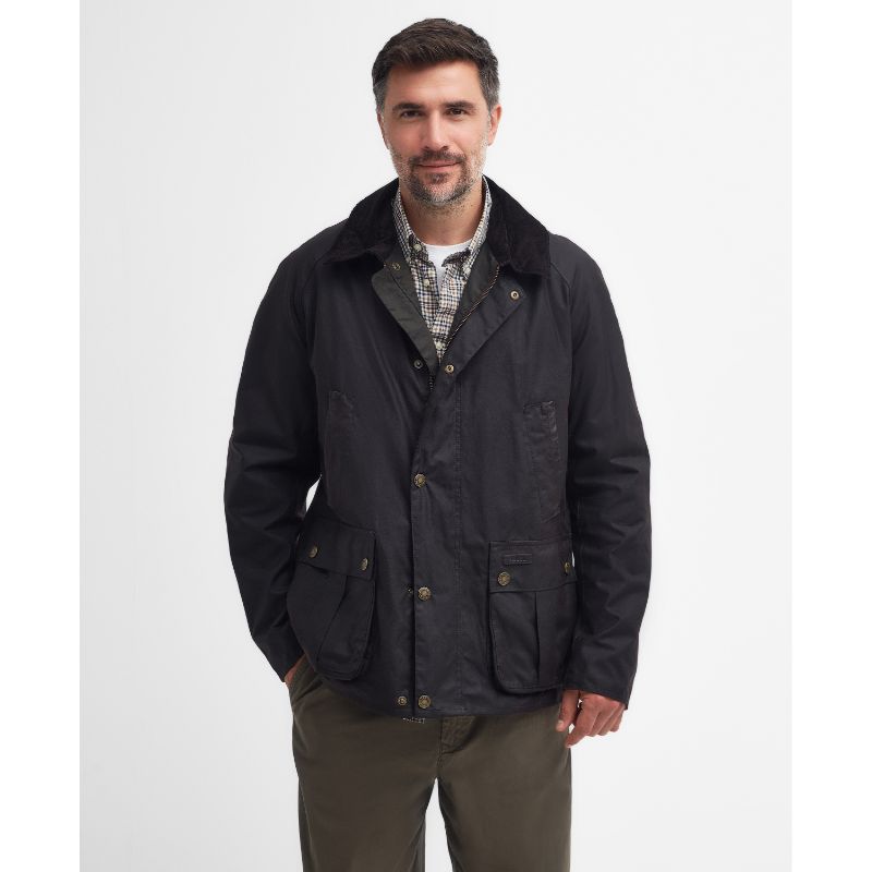 A rugged staple of the British countryside, the Barbour Halton Mens Wax Jacket is crafted from waxed cotton with an authentic needlecord collar. Featuring zip and stud front fastenings, handwarmer pockets, and box pleat bellow pockets trimmed with leather, this stylish jacket is a reliable piece for any outdoor adventure.