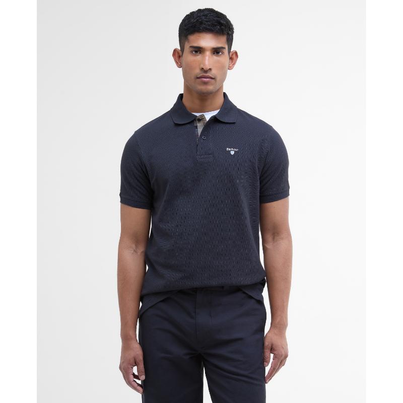 Barbour Tartan Pique Mens Polo Shirt - Navy/Dress