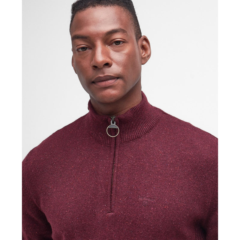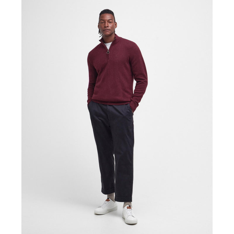 Barbour Tisbury Lambswool 1/4 Zip Mens Jumper - Ruby