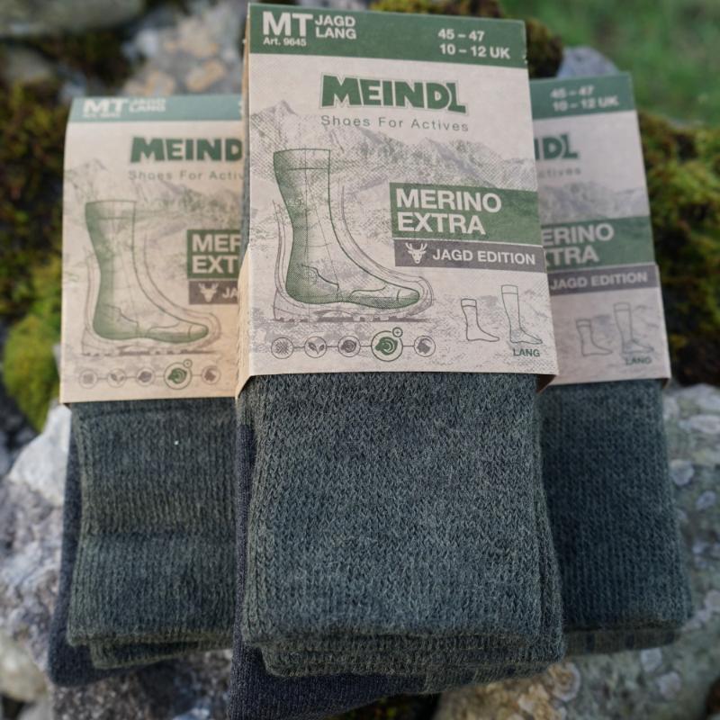 The Meindl MT Jagd Long Hunting Merino Boot Socks are highly technical and anatomically shaped for supreme cushioning and comfort. Constructed from a luxurious merino wool blend, these socks are highly breathable and odour inhibiting. With added reinforcement ensuring good support all day long, along with an elasticated rib design which provides ultimate fit.