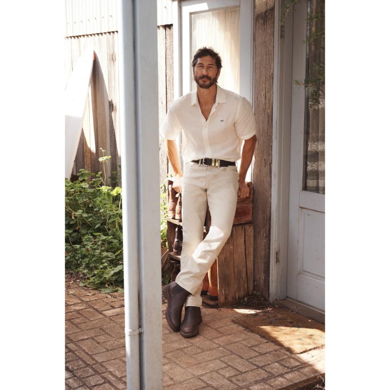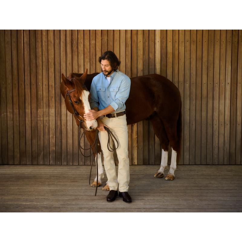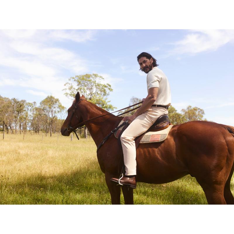 The RM Williams Ramco Mens Drill Jeans are crafted from 10oz weight cotton with just the merest hint of elastane for stretch and added comfort. They are tailored to a regular fit with a straight leg and low-rise waist. The same attention to detail we have come to expect from RM is evident in the Longhorn stitch on the back pocket and RM Williams branding throughout. Effortlessly wearable for smart casual. Machine washable.