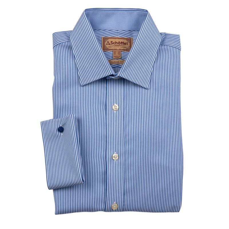Schoffel Greenwich Double Cuff Classic Mens Shirt - Navy Stripe