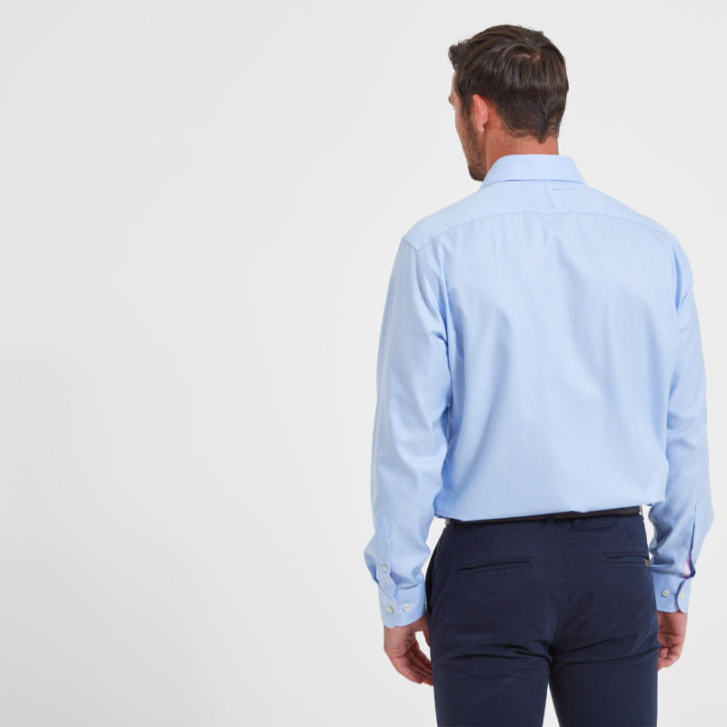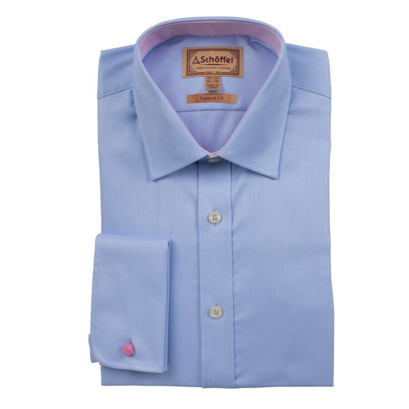 Schoffel Greenwich Double Cuff Tailored Fit Mens Shirt - Light Blue Diagonal