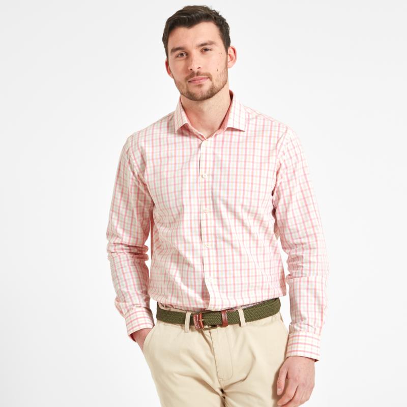Schoffel Hebden Tailored Fit Mens Shirt - Flamingo/Oat Check