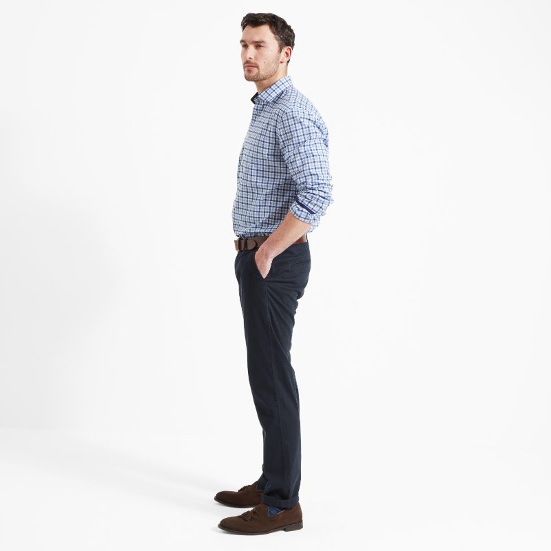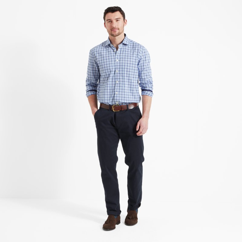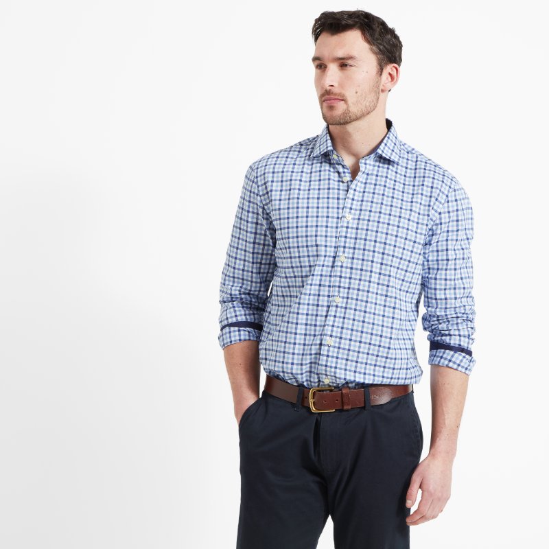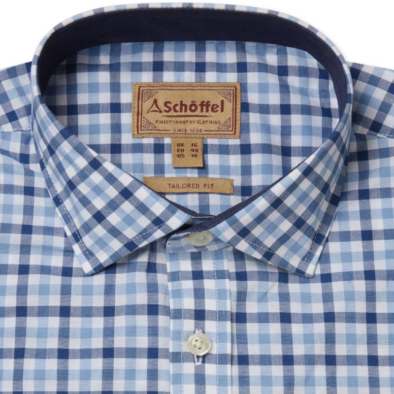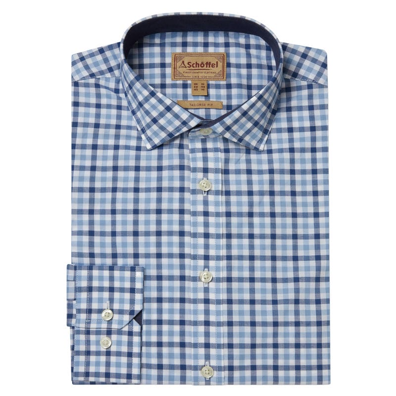 Schoffel Hebden Tailored Fit Mens Shirt - French Navy/Sky Blue Check