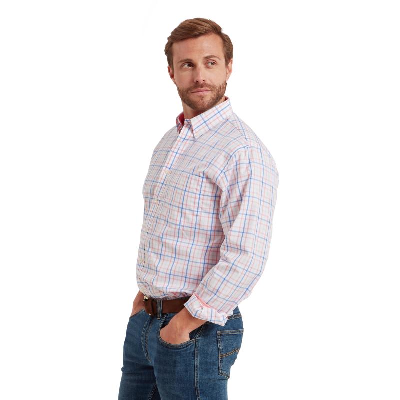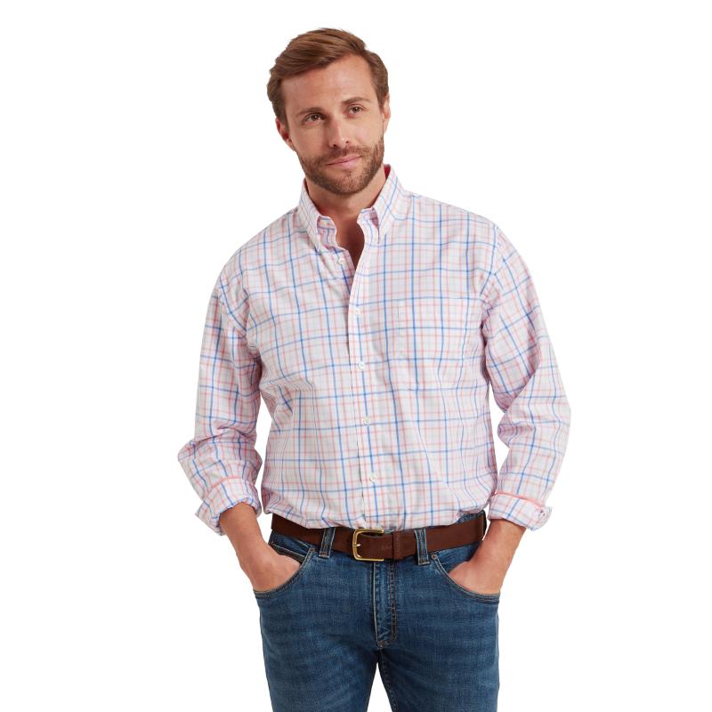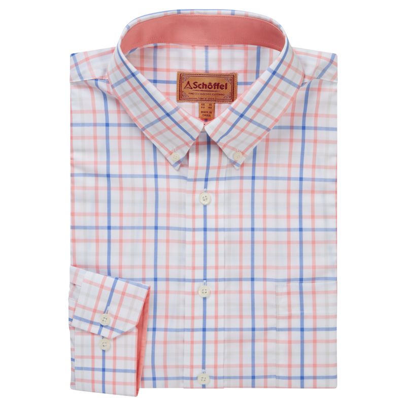 Schoffel Holkham Classic Mens Shirt - Flamingo/Cloud/Blue