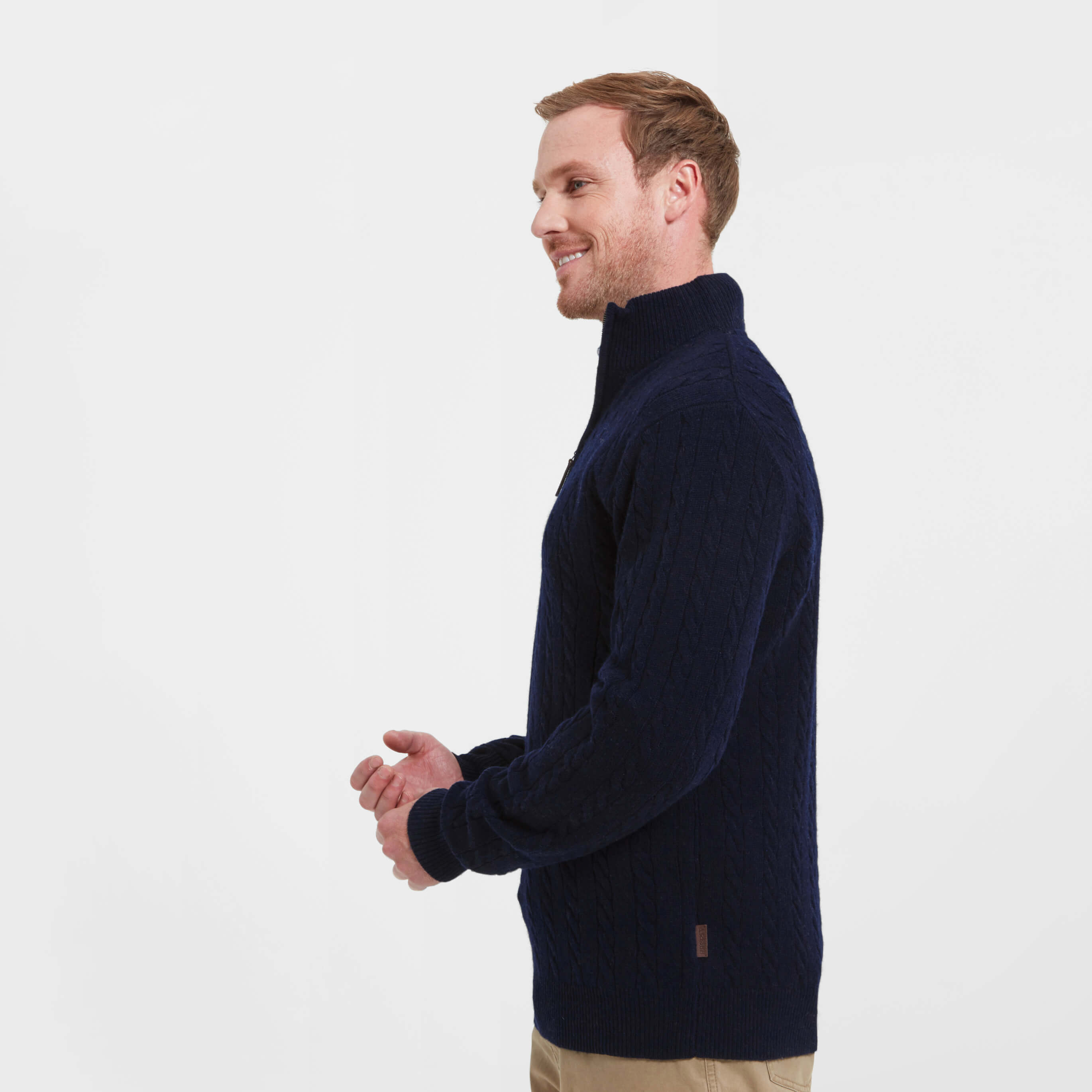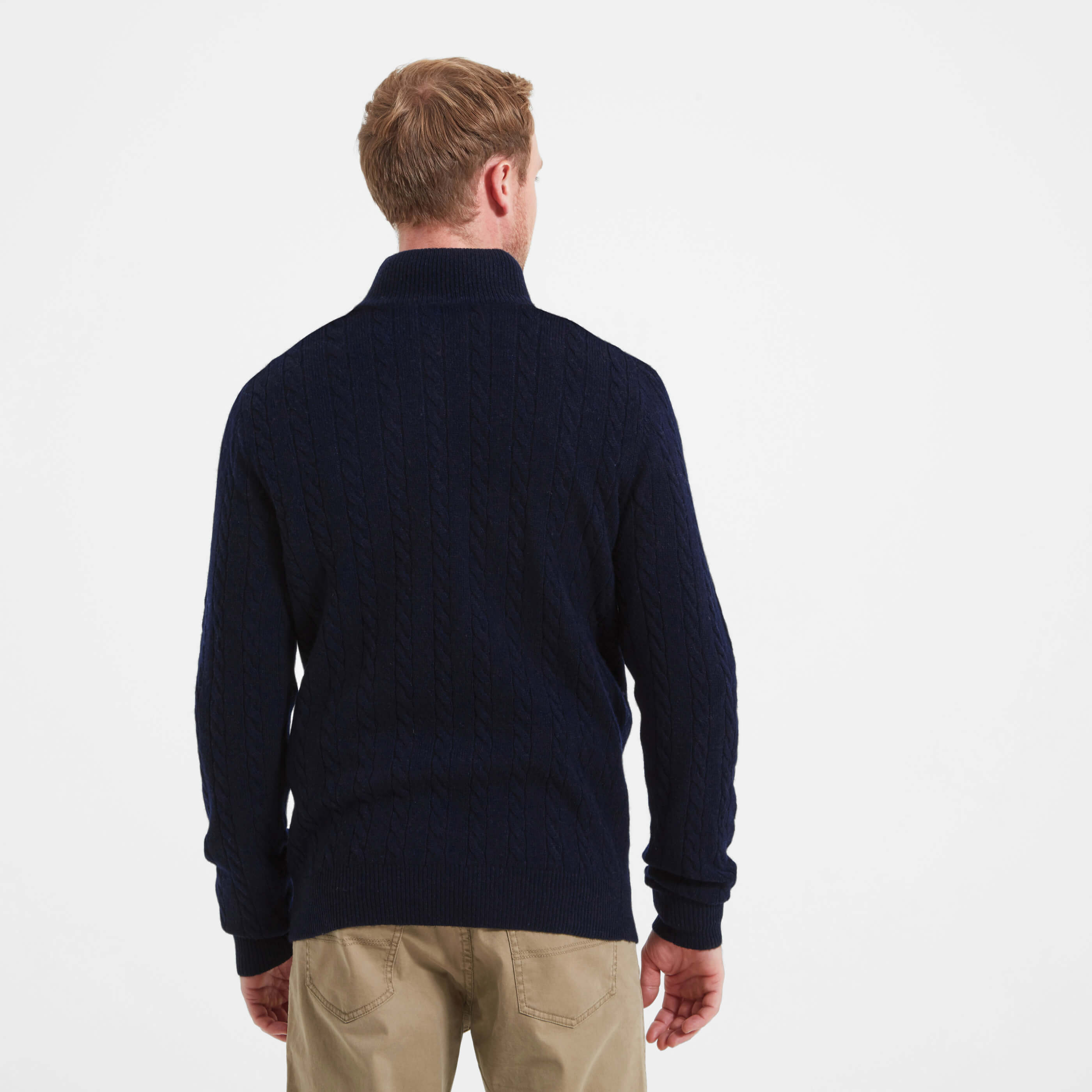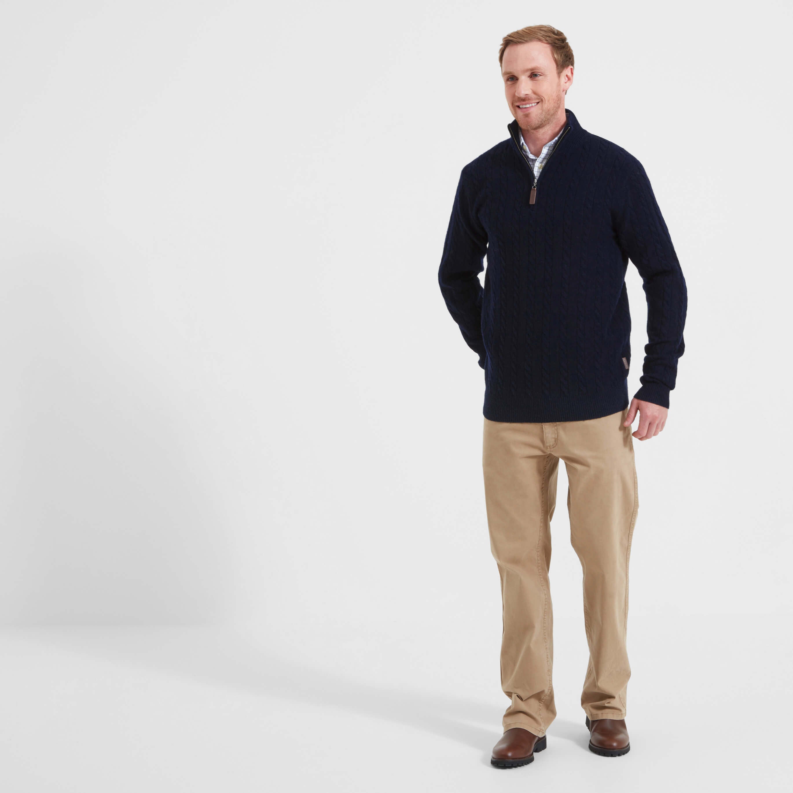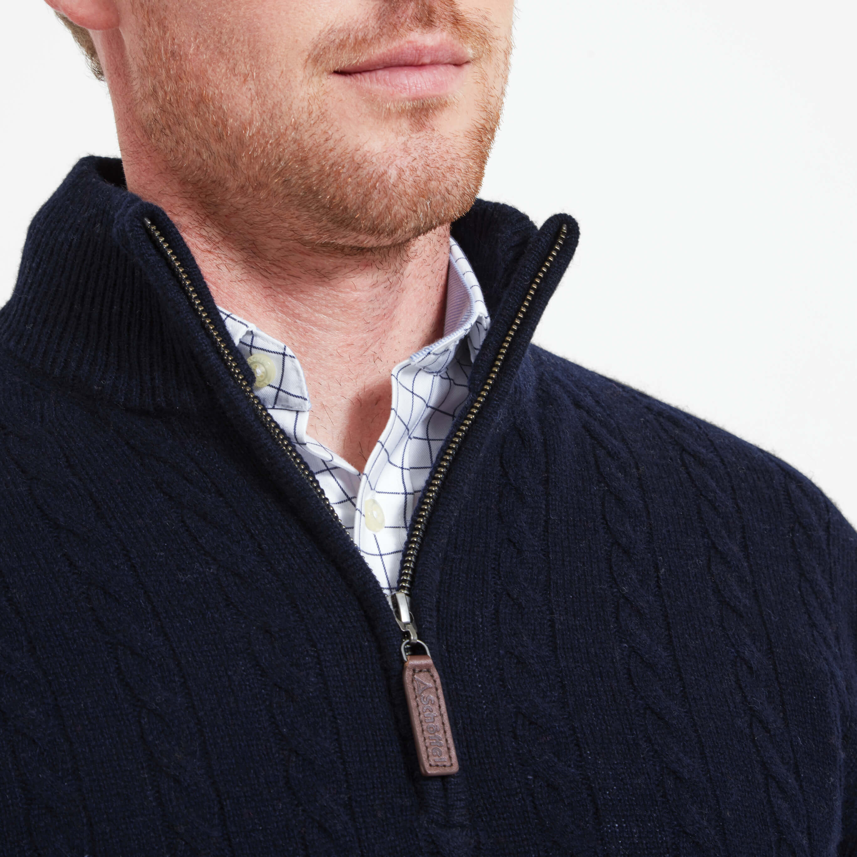 Schoffel Tain Cable Lambswool 1/4 Zip Neck Mens Jumper - Navy