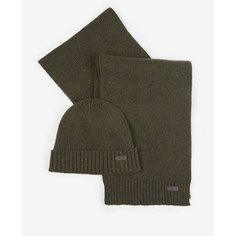 Barbour Carlton Fleck Beanie & Scarf Gift Set - Olive