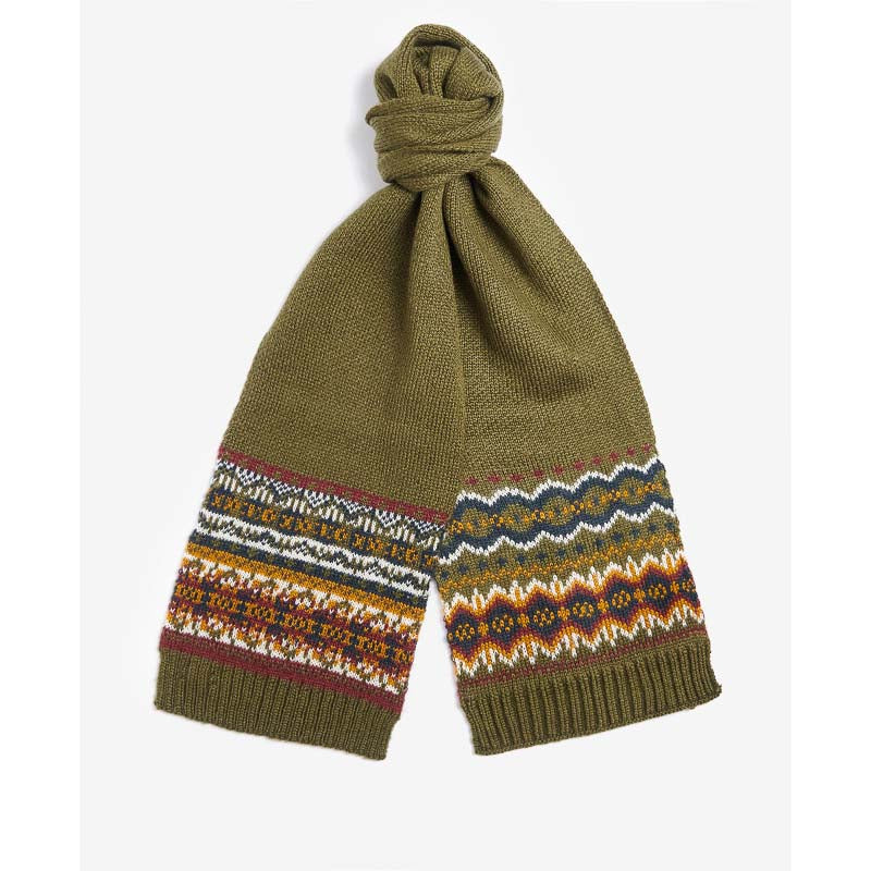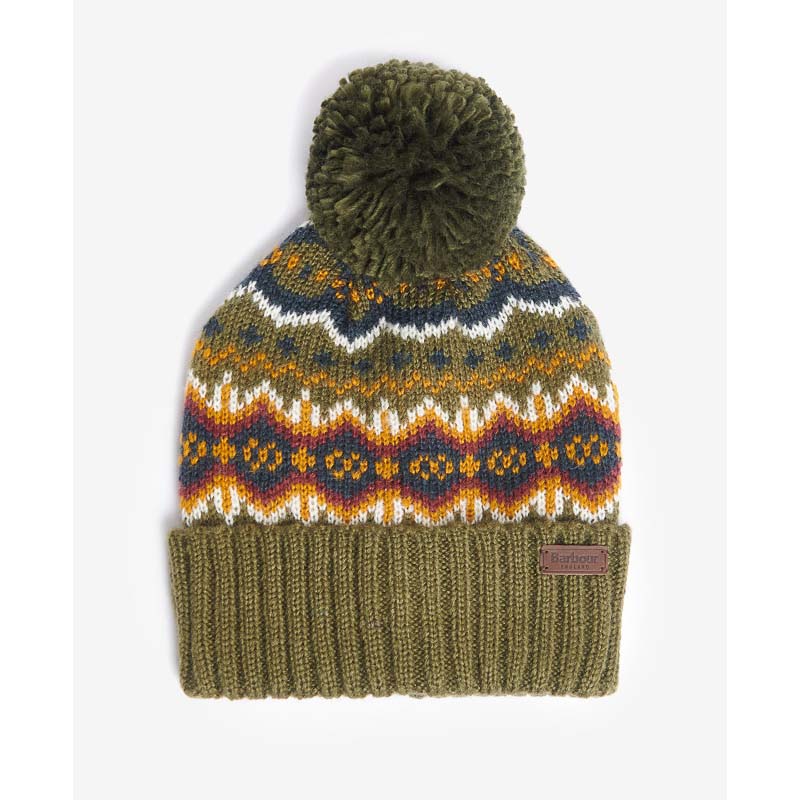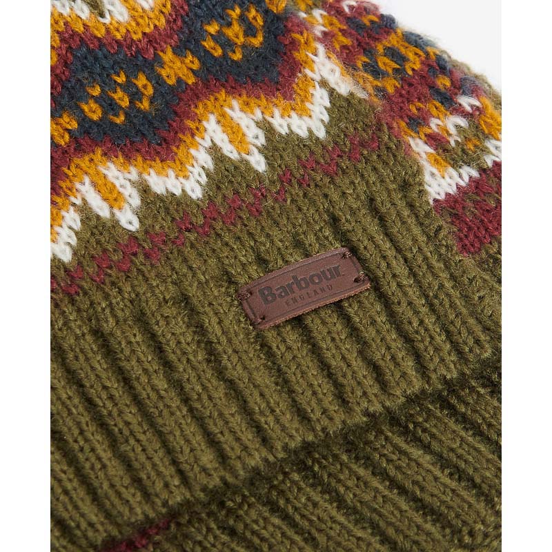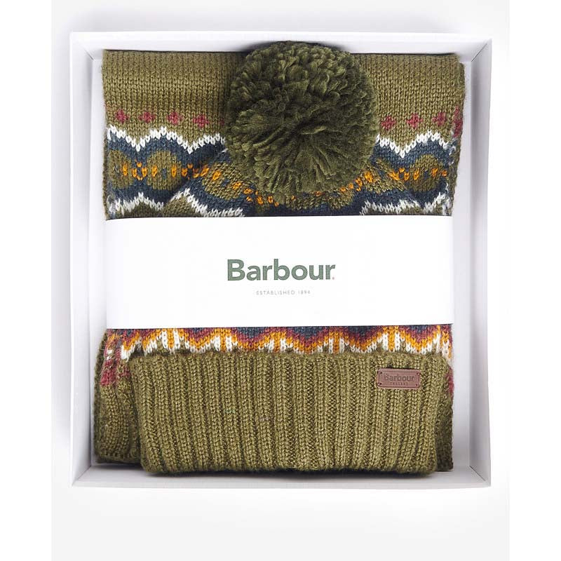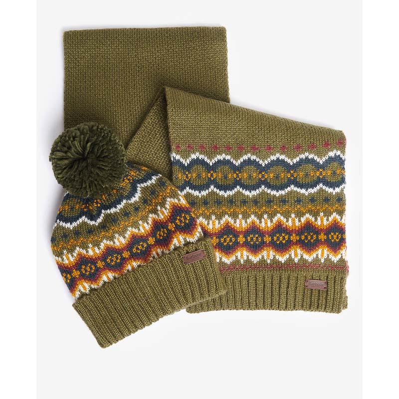 Barbour Fairisle Beanie & Scarf Gift Set - Olive