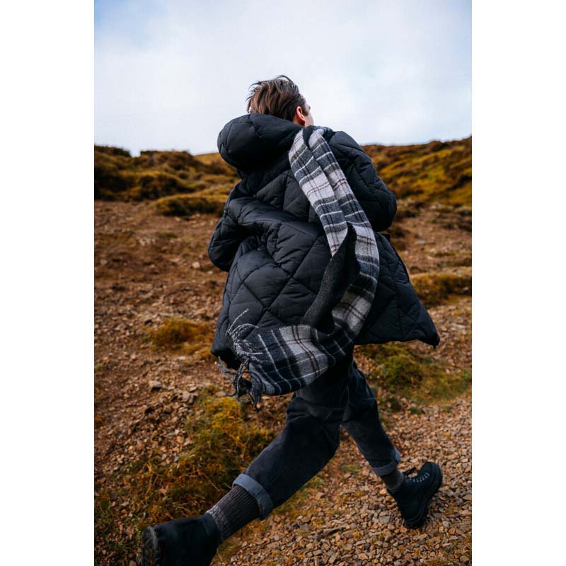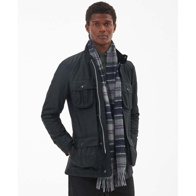 Barbour Wool Cashmere Tartan Scarf - Black Slate Tartan