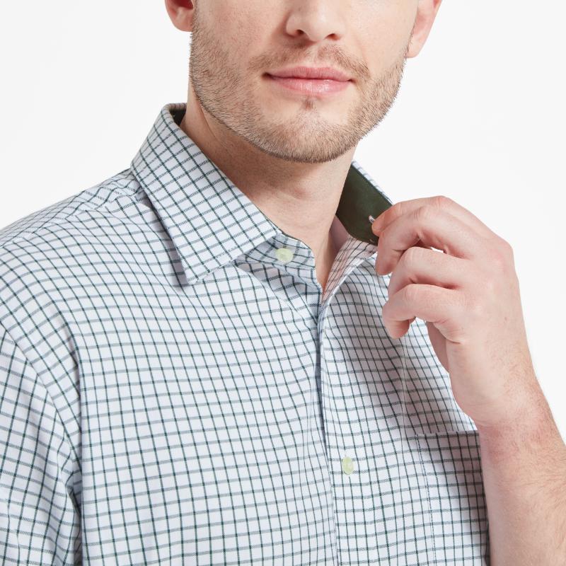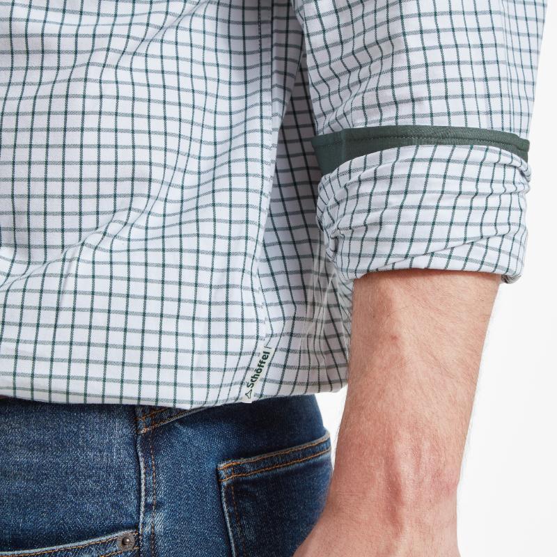 The Schoffel Cambridge Mens Cotton Check Shirt is a classic fit, made from 100% cotton and manufactured to the exacting standards you have come to expect from Schoffel including tonal inner collar and cuffs. The two button cuff offers the option to wear with cufflinks and indeed, rope knot cufflinks and collar stiffeners are supplied. Machine washable.