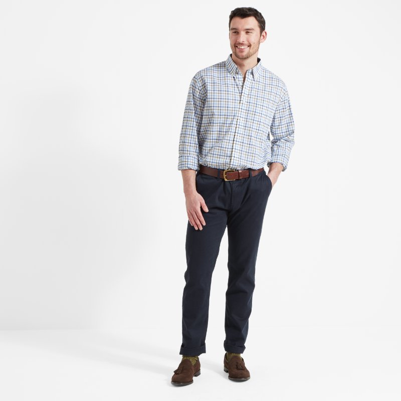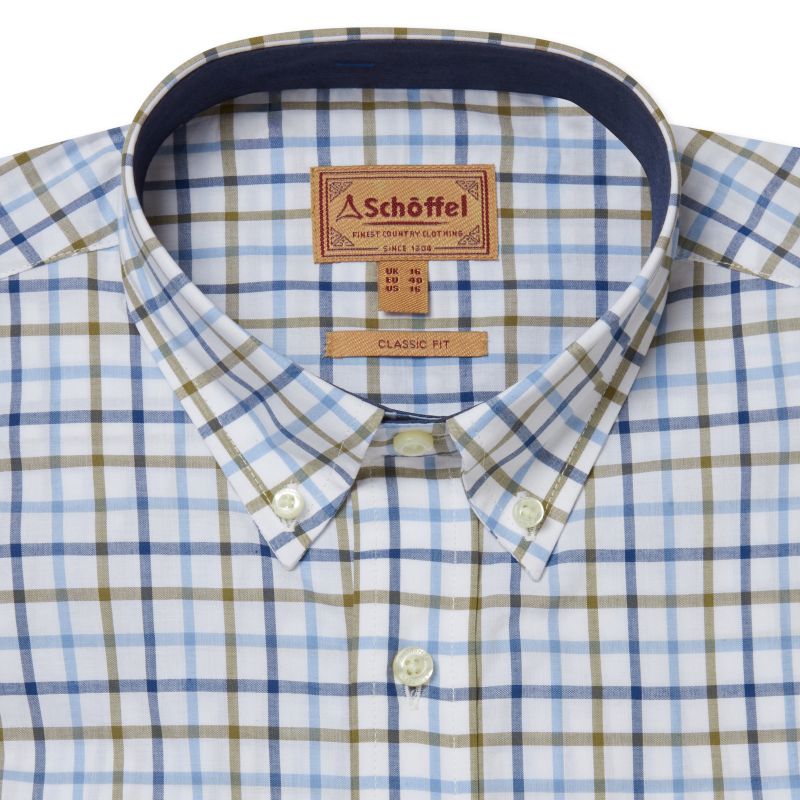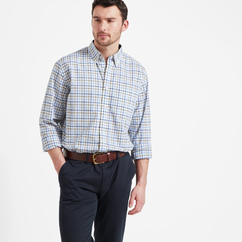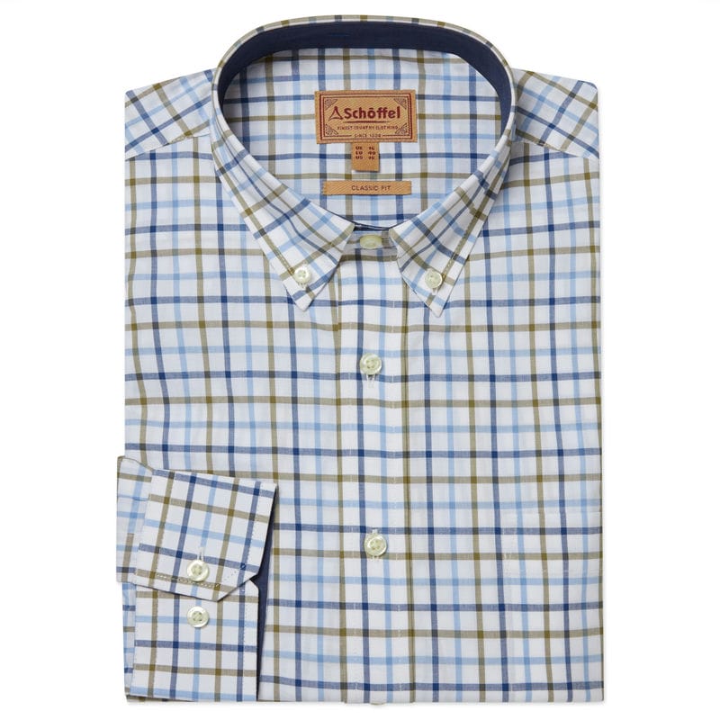 Schoffel Holkham Classic Mens Shirt - French Navy/Light Khaki/Sky Blue