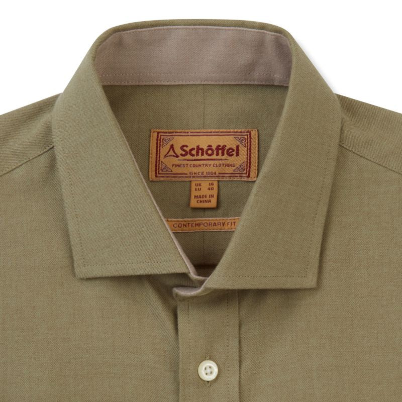 Schoffel Newton Tailored Sporting Fit Mens Cotton Wool Shirt - Olive